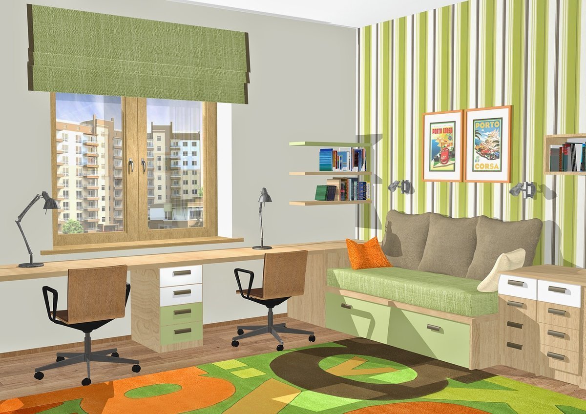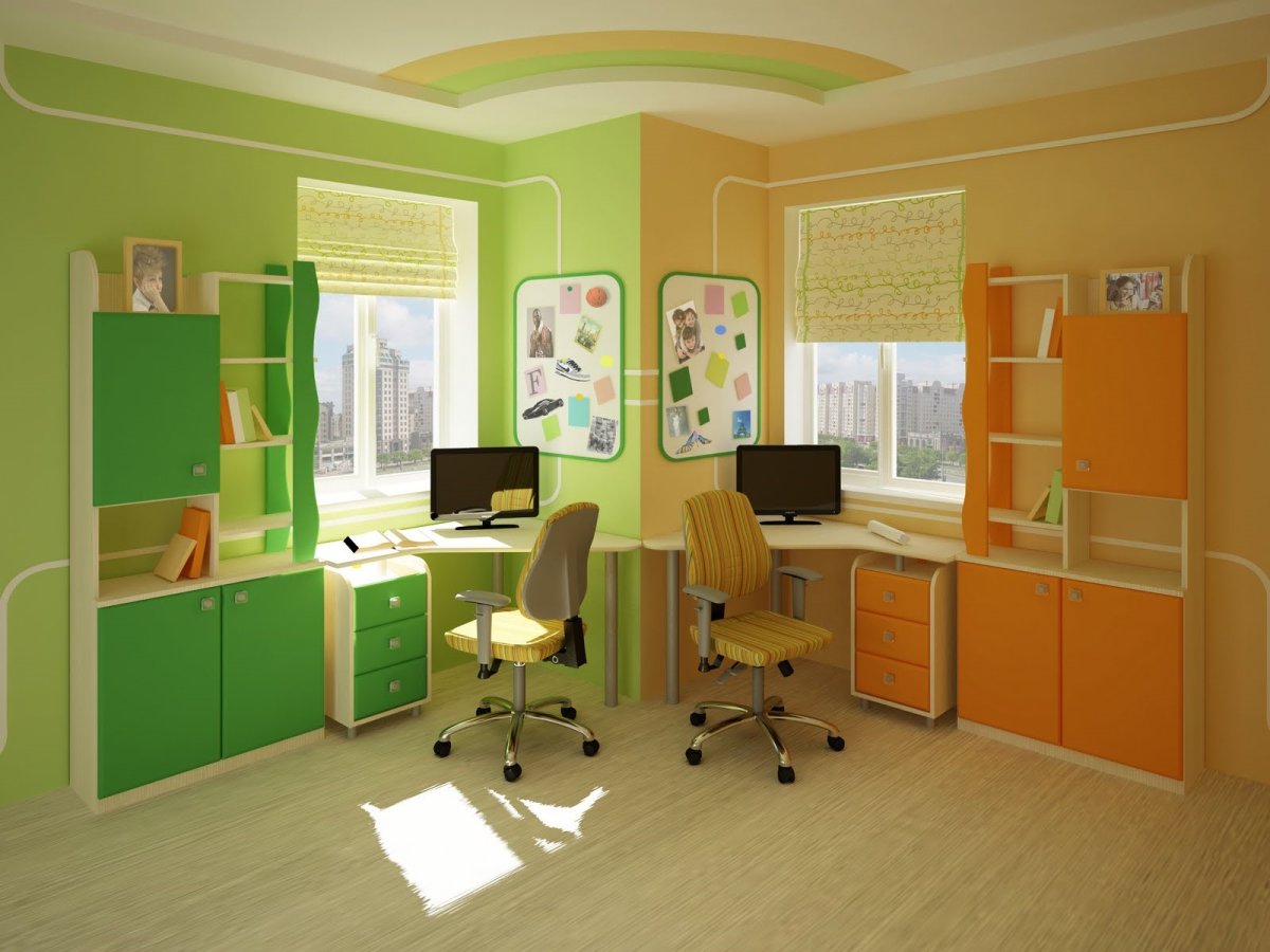 Обустроить детскую комнату для двоих школьников