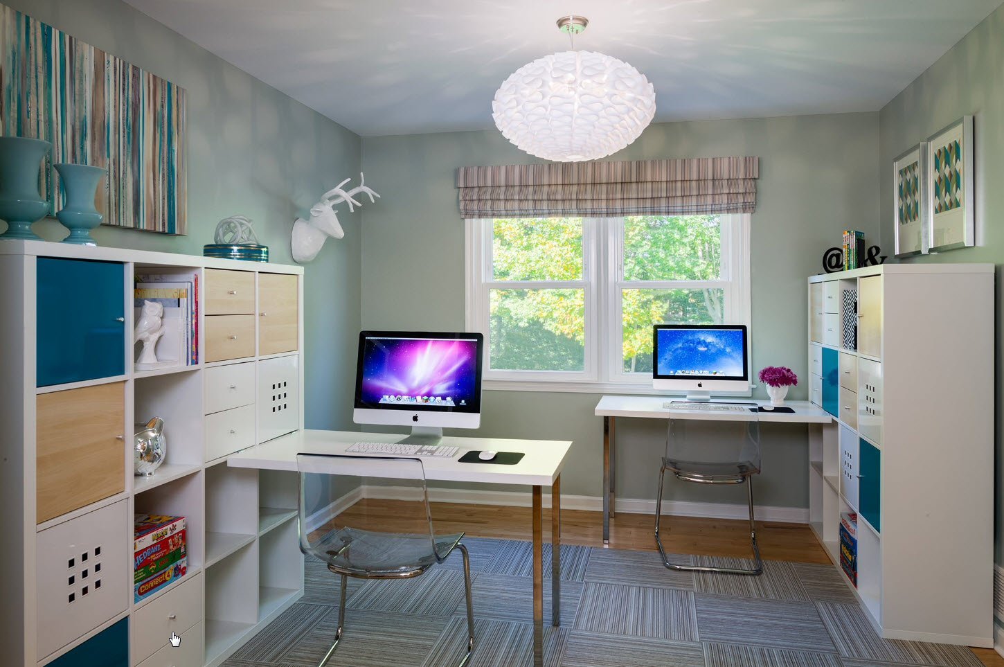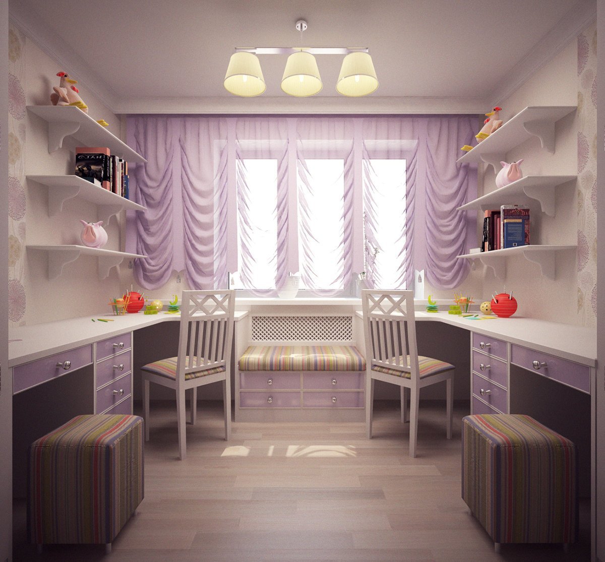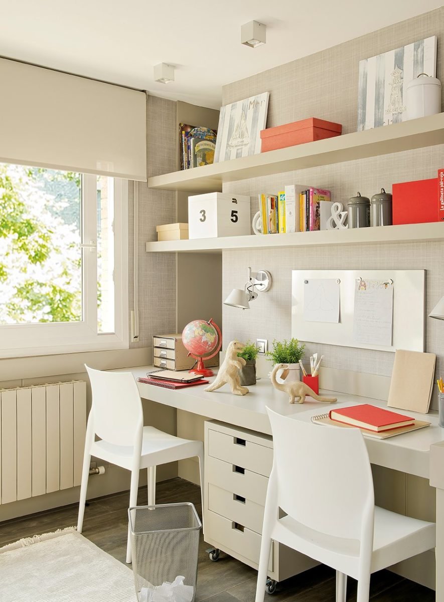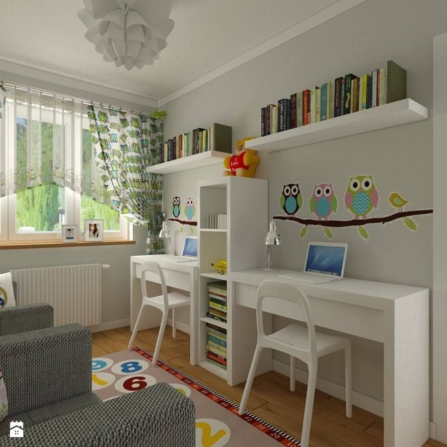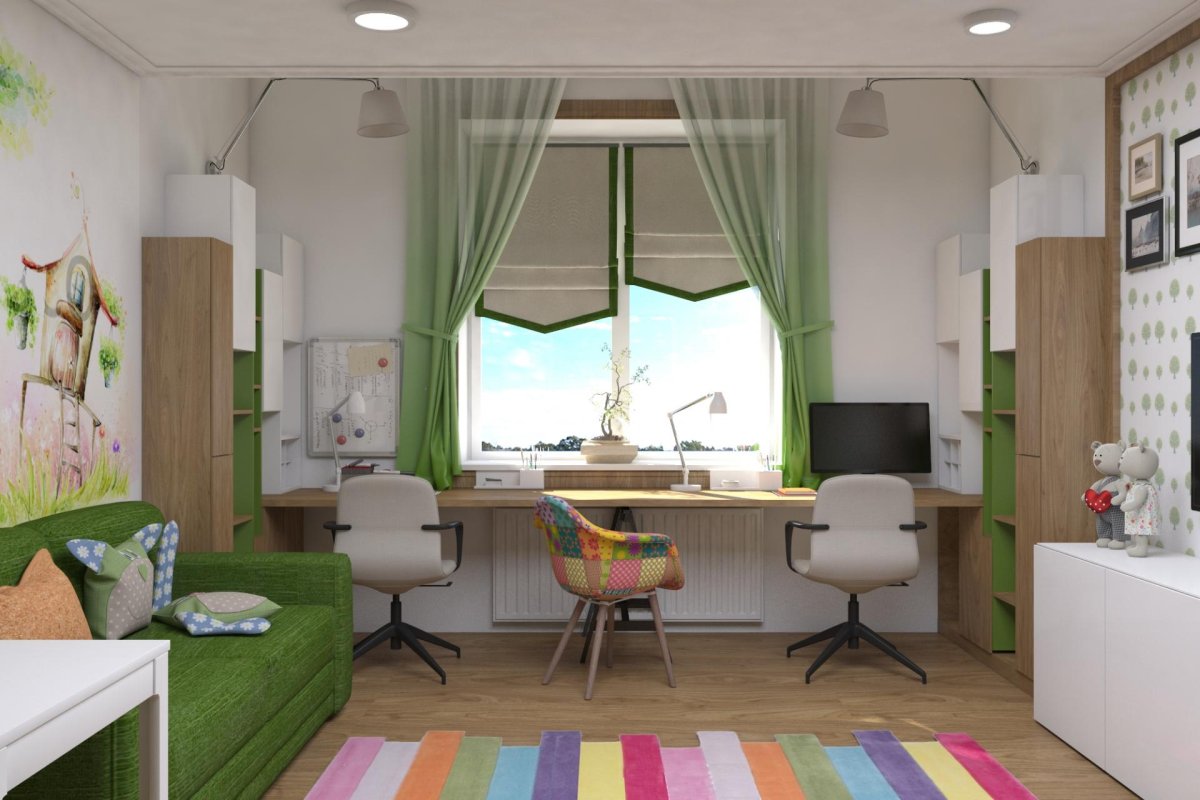 Рабочая зона у окна в детской для двоих