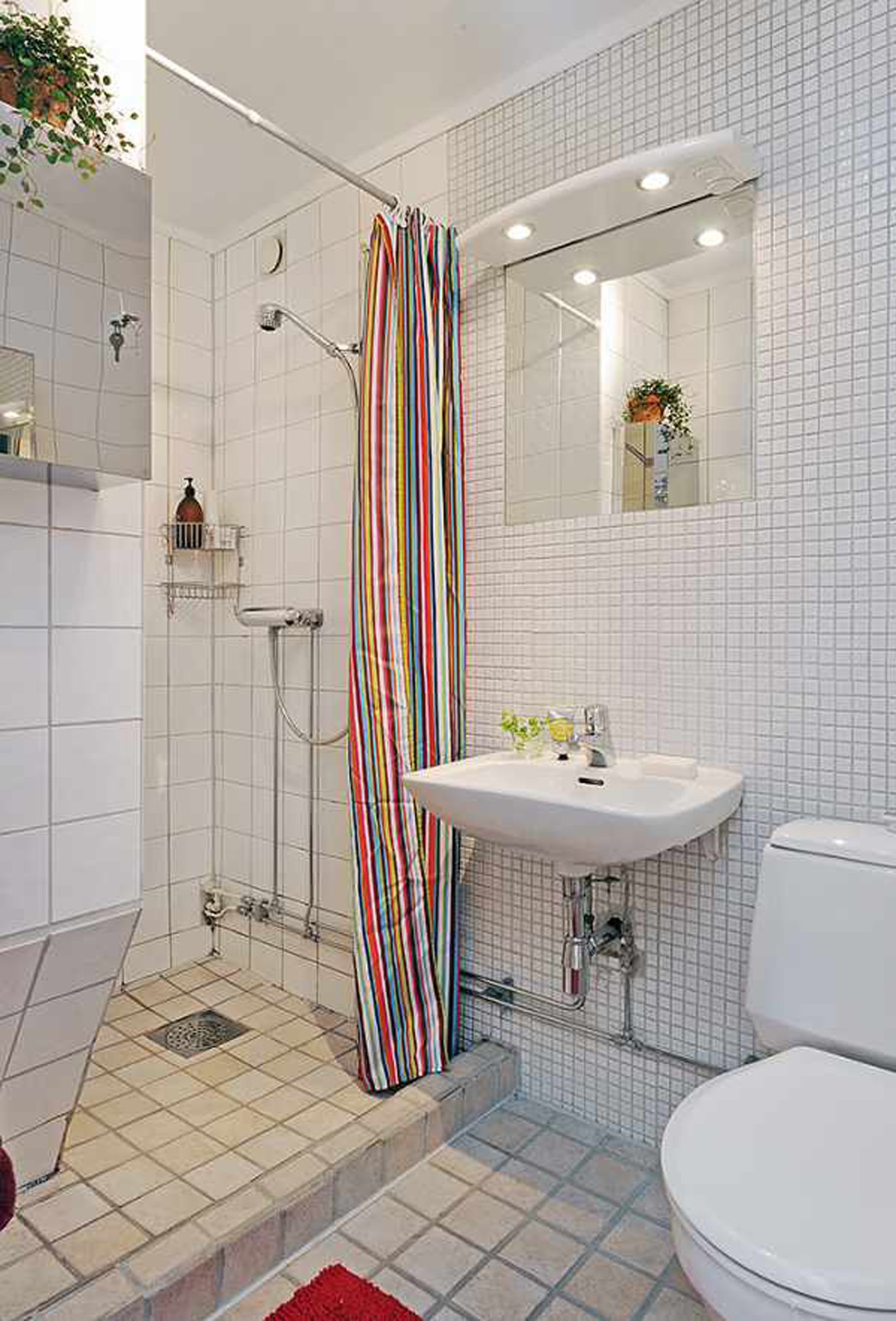 Маленькая ванная комната с душем без кабины