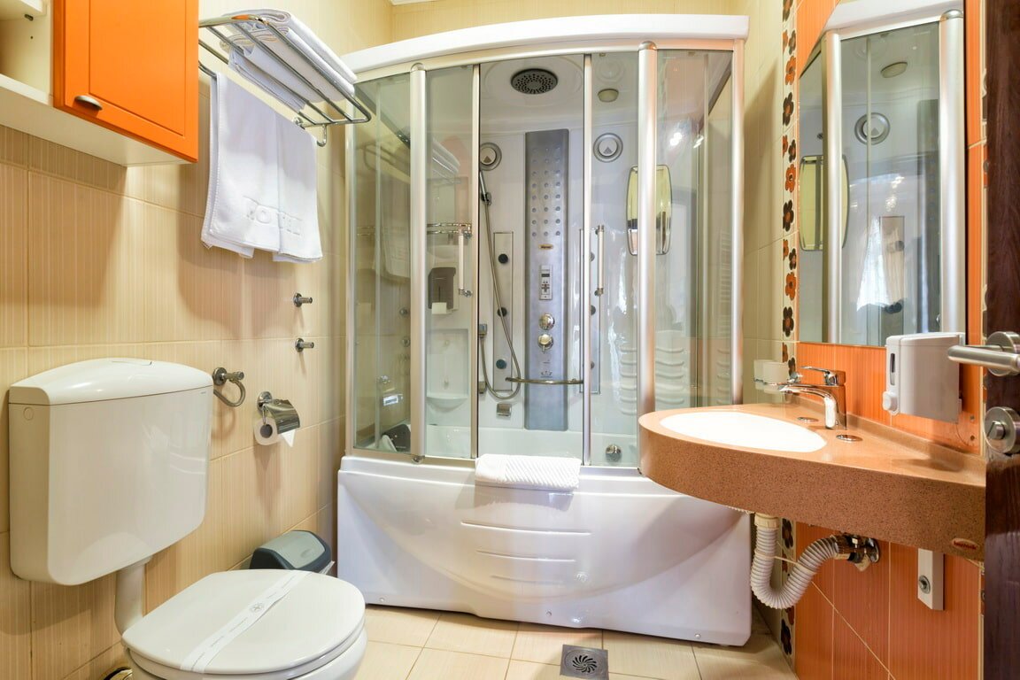 Душевая кабина в маленькой ванной комнате