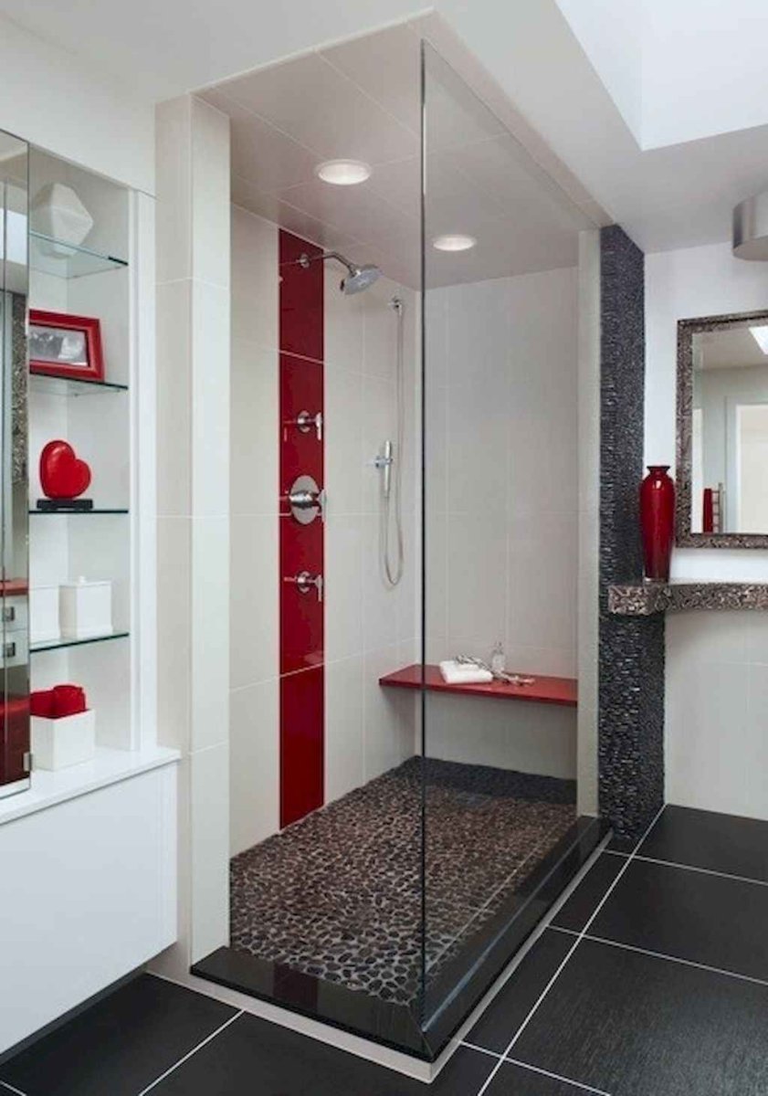Красная ванная комната маленькая с душевой