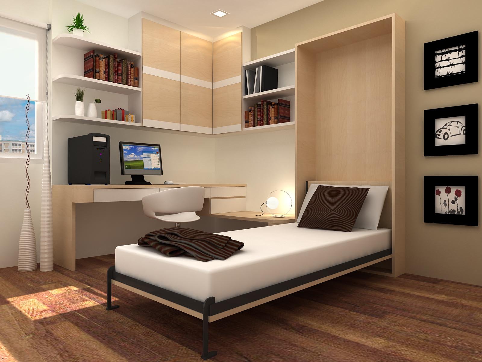 Дизайн комнаты с кроватью и столом
