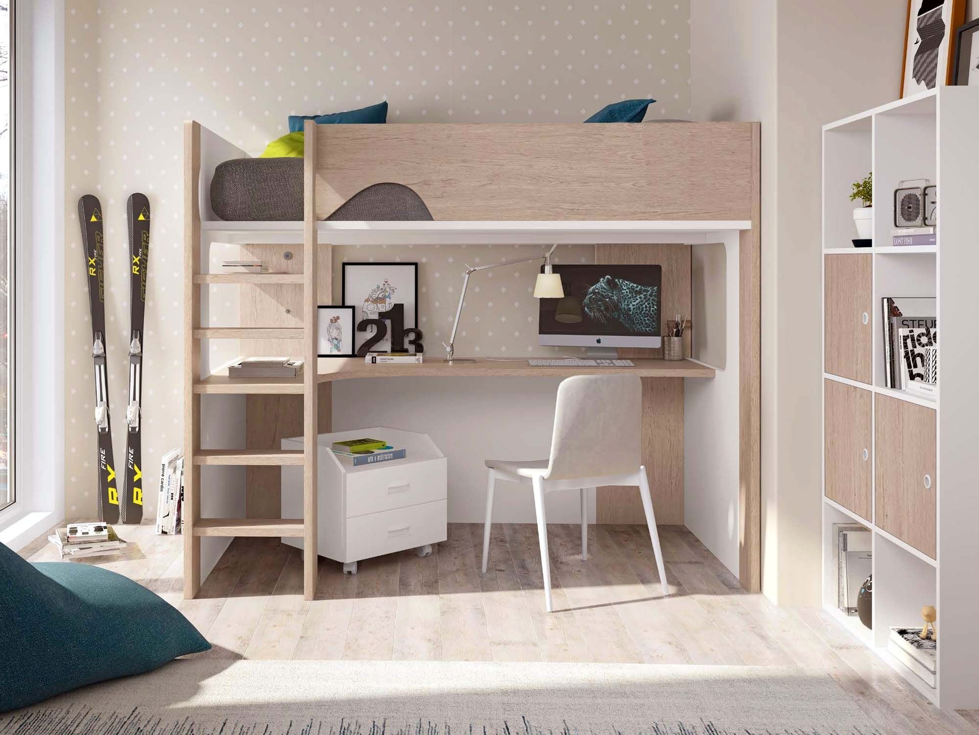 Кровать-чердак с рабочей зоной для подростка