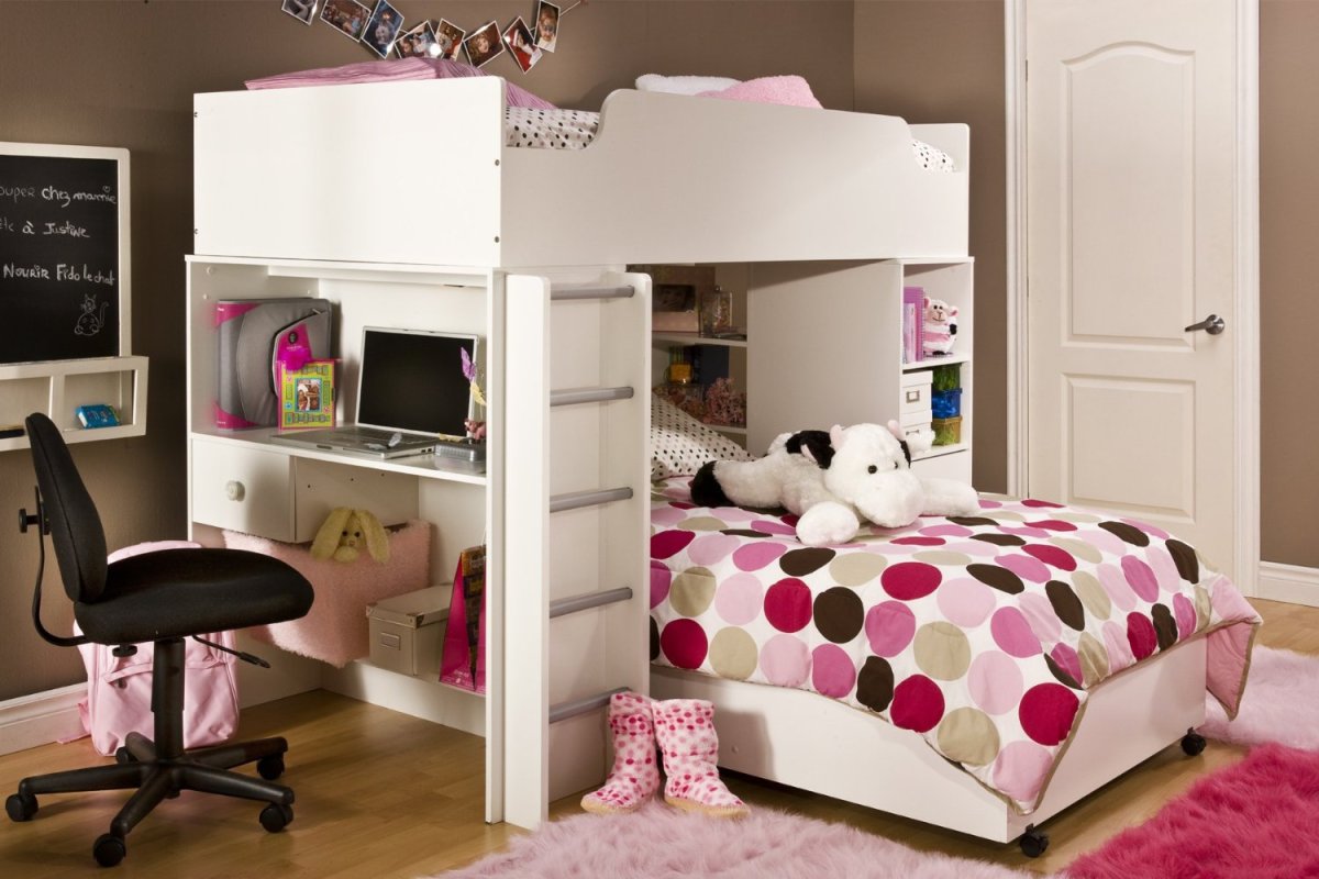 Кровать-чердак с рабочей зоной для девочки