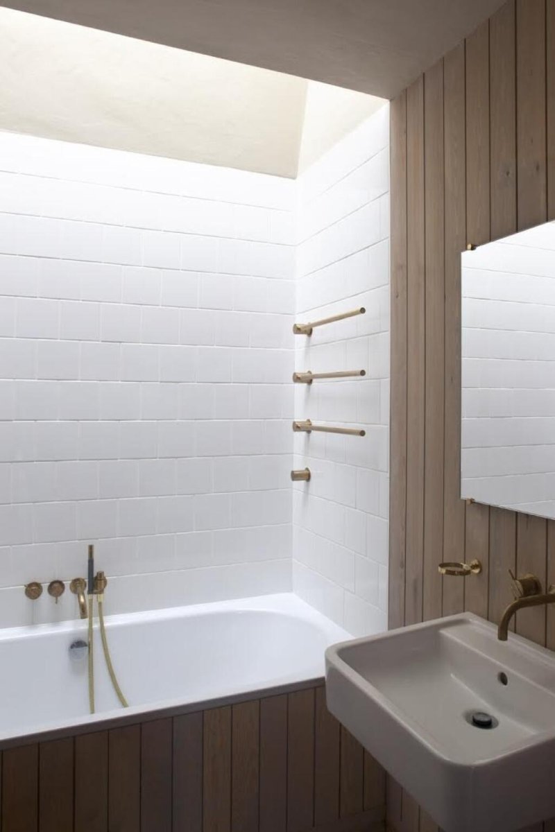 Ванная комната в скандинавском стиле в деревянном доме