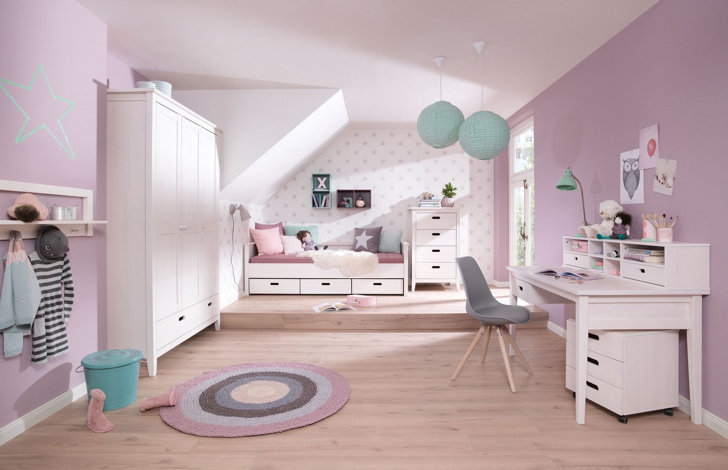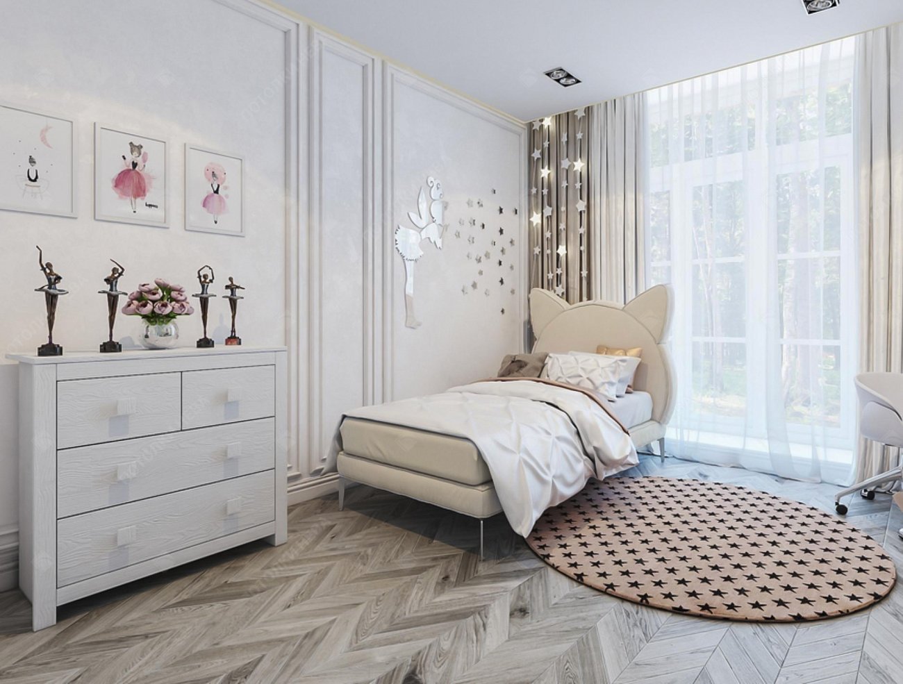 Комната для девочки с белой мебелью