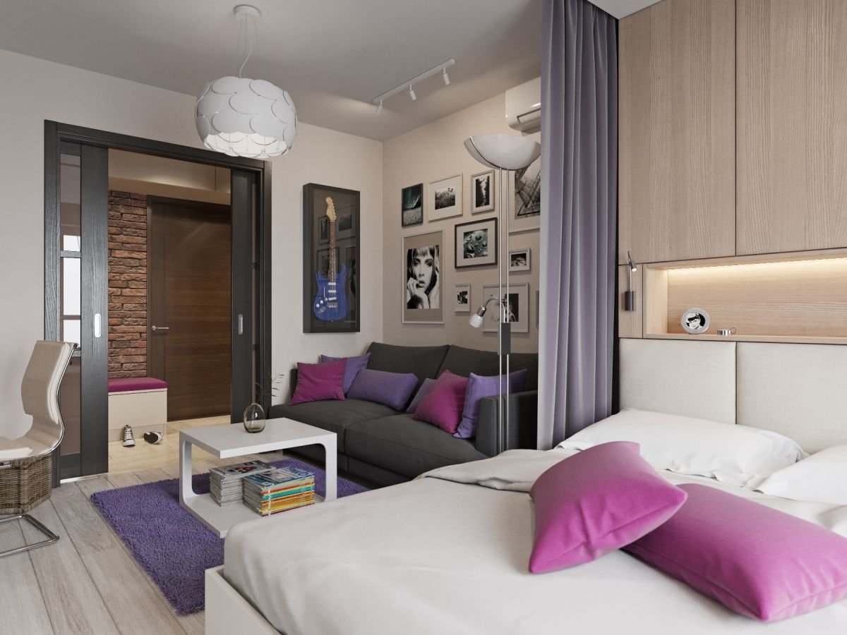 Интерьер комнаты в однокомнатной квартире