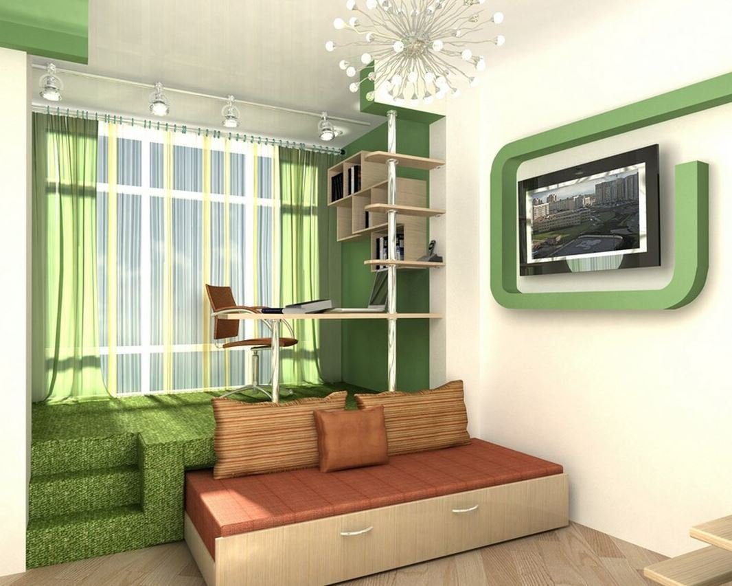 Зонирование комнаты с балконом