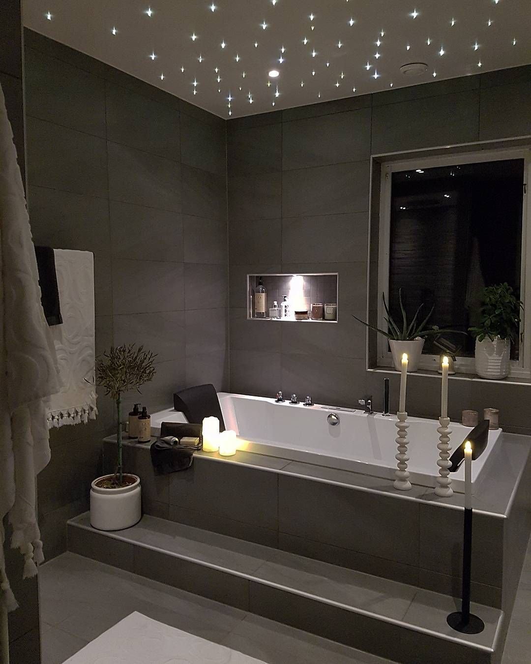 Потолок в ванной с точечными светильниками