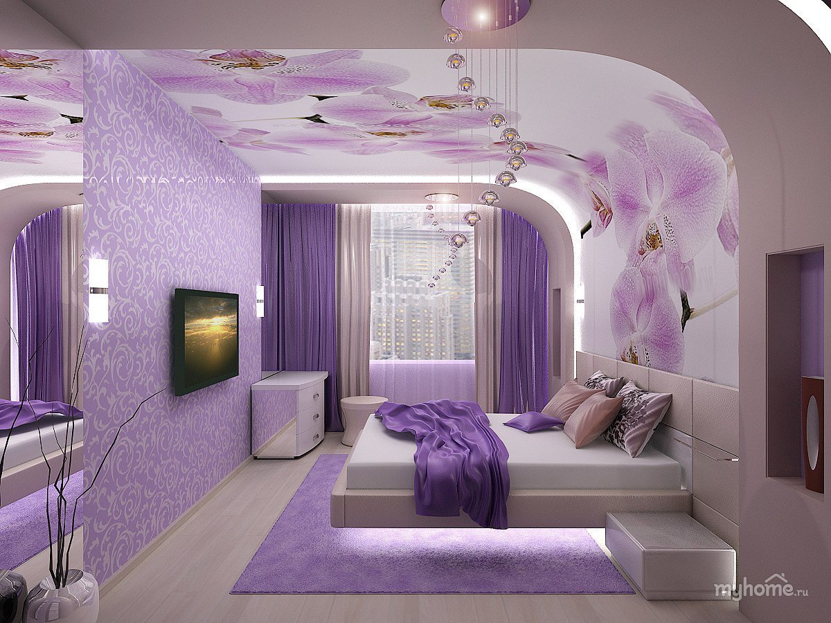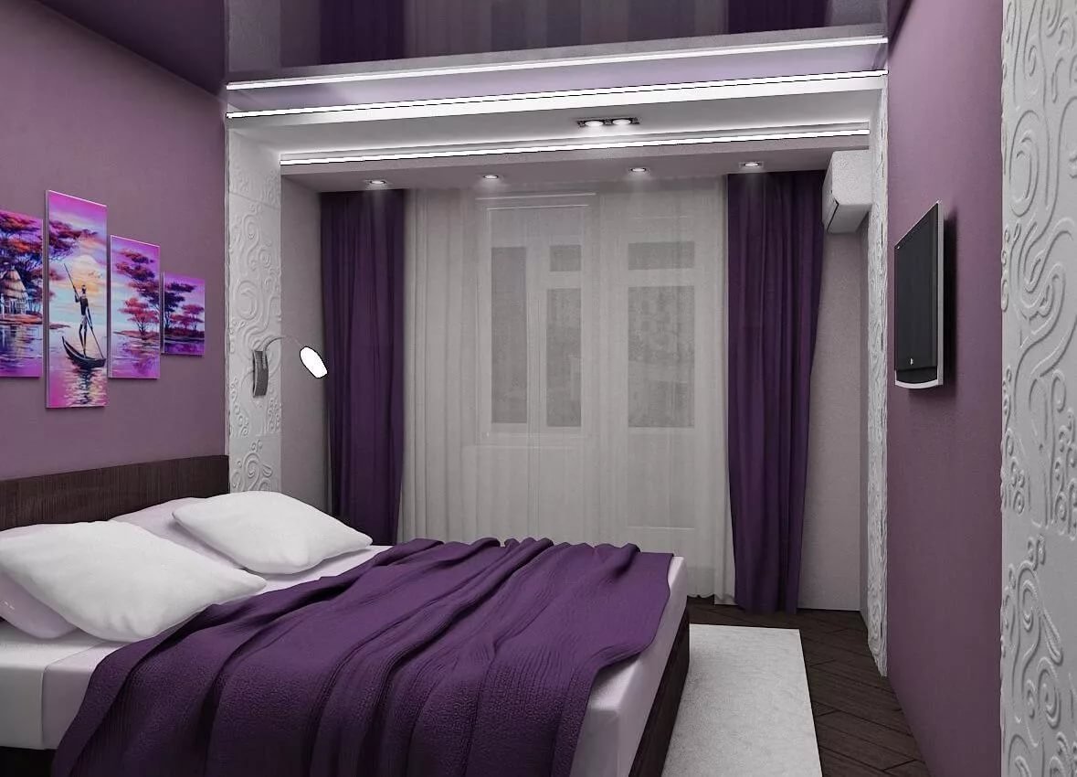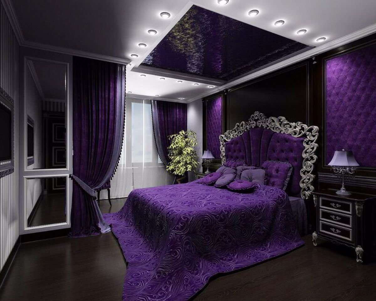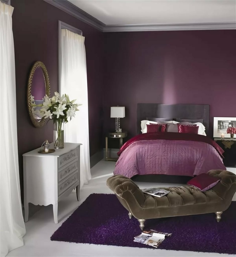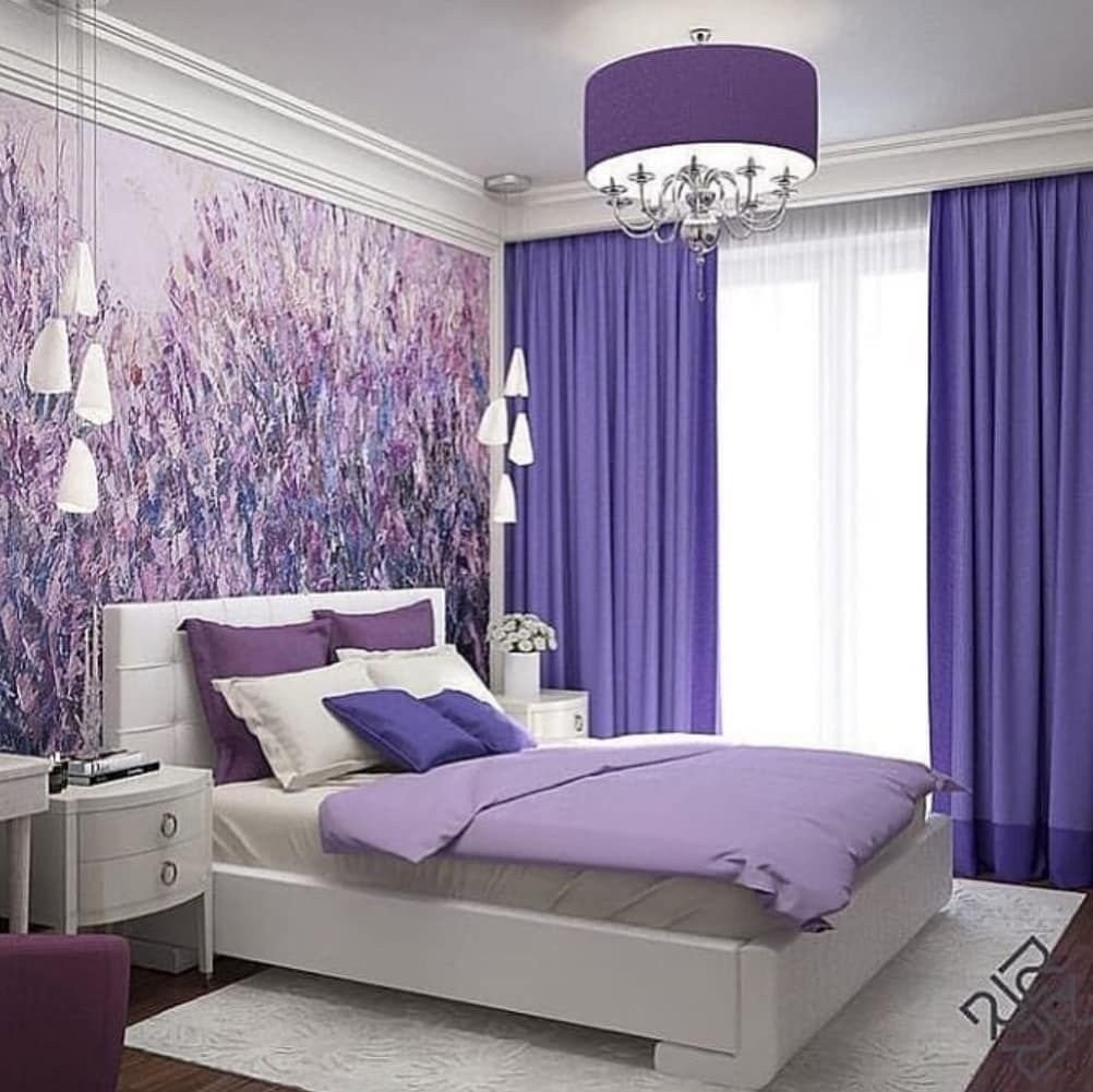 Спальные комнаты в темно сиреневых тонах