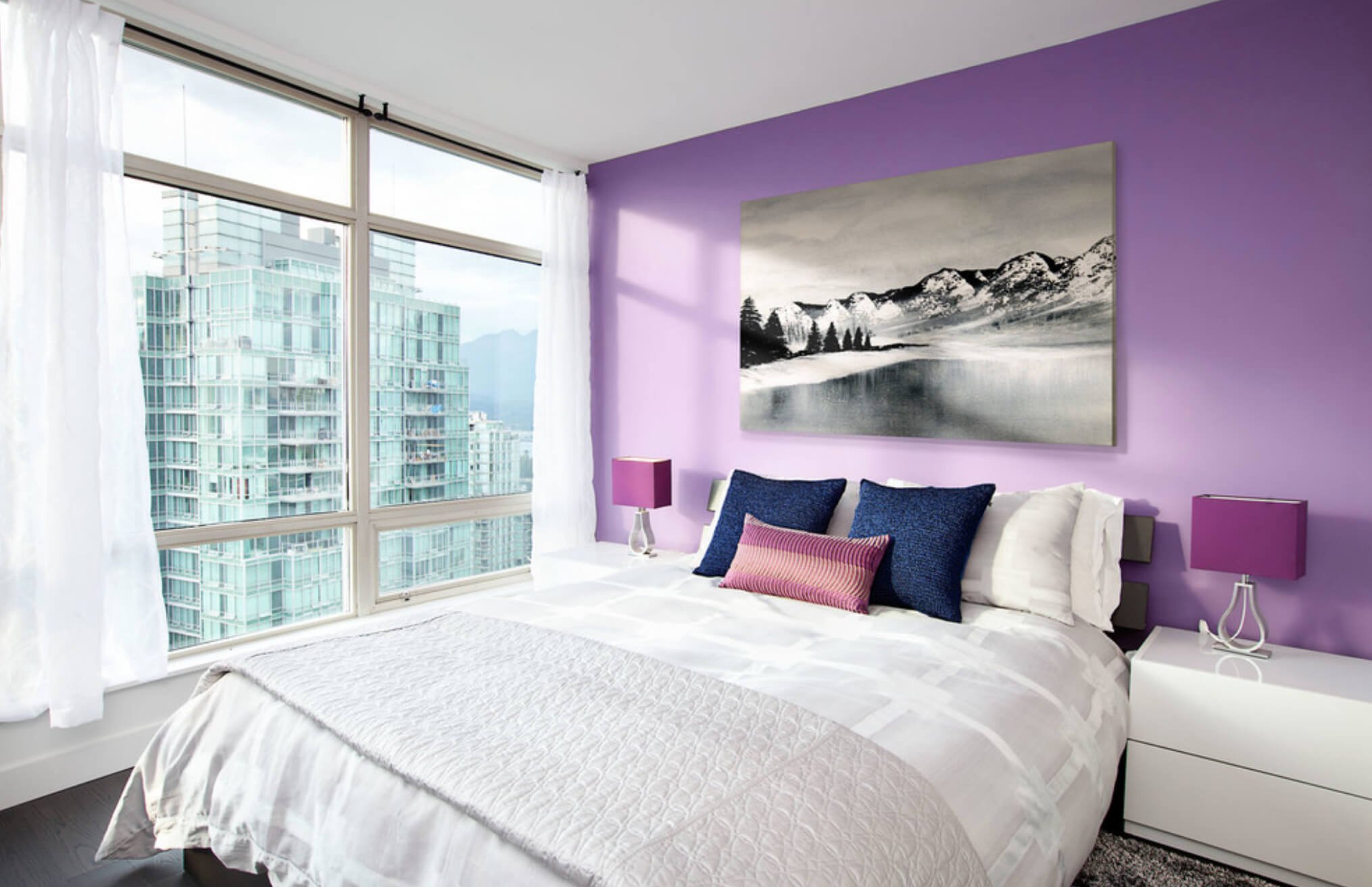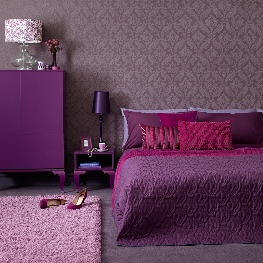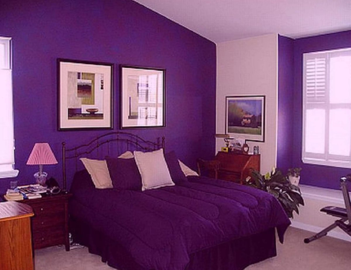 Фиолетовые стены в спальне