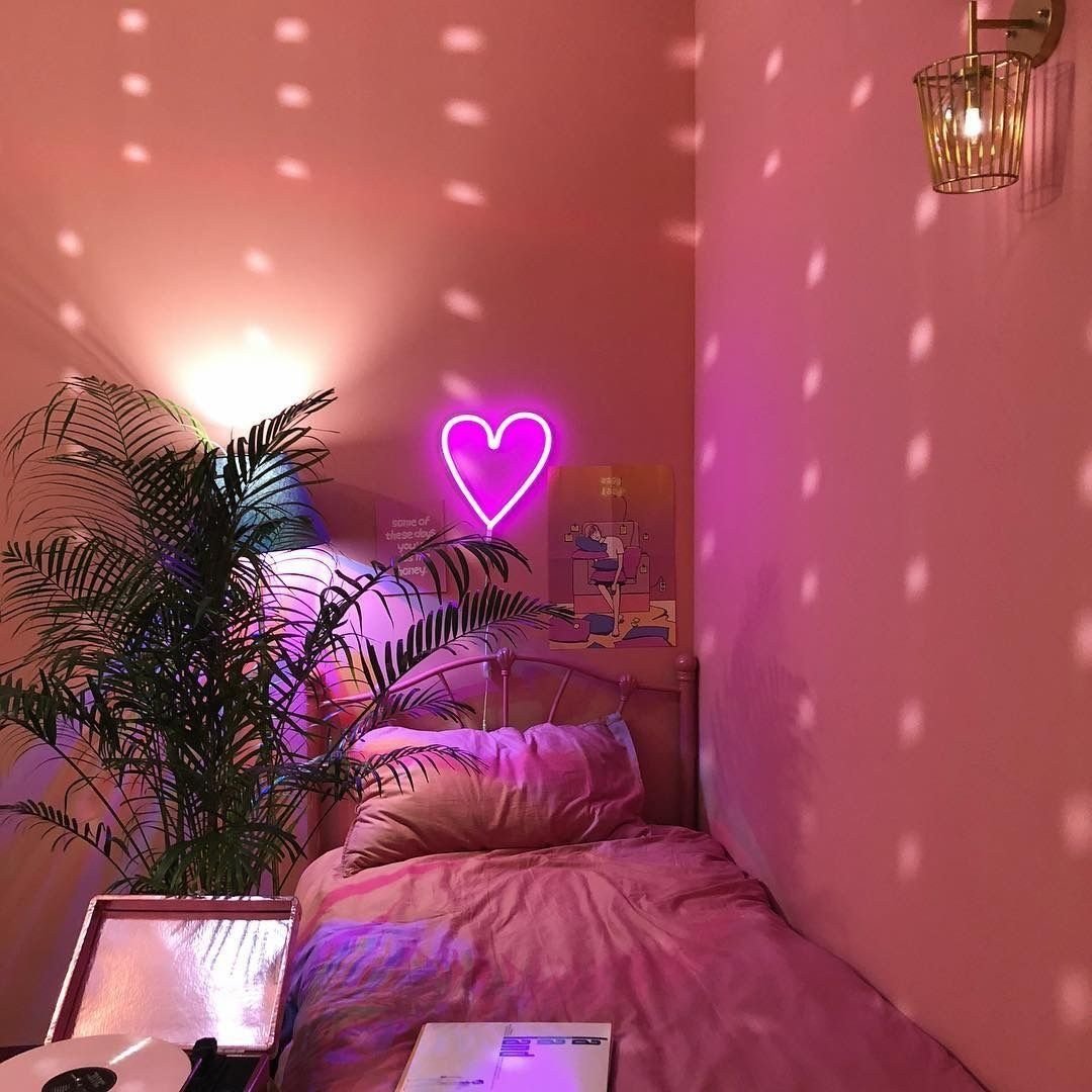 Неоновая вывеска в спальне
