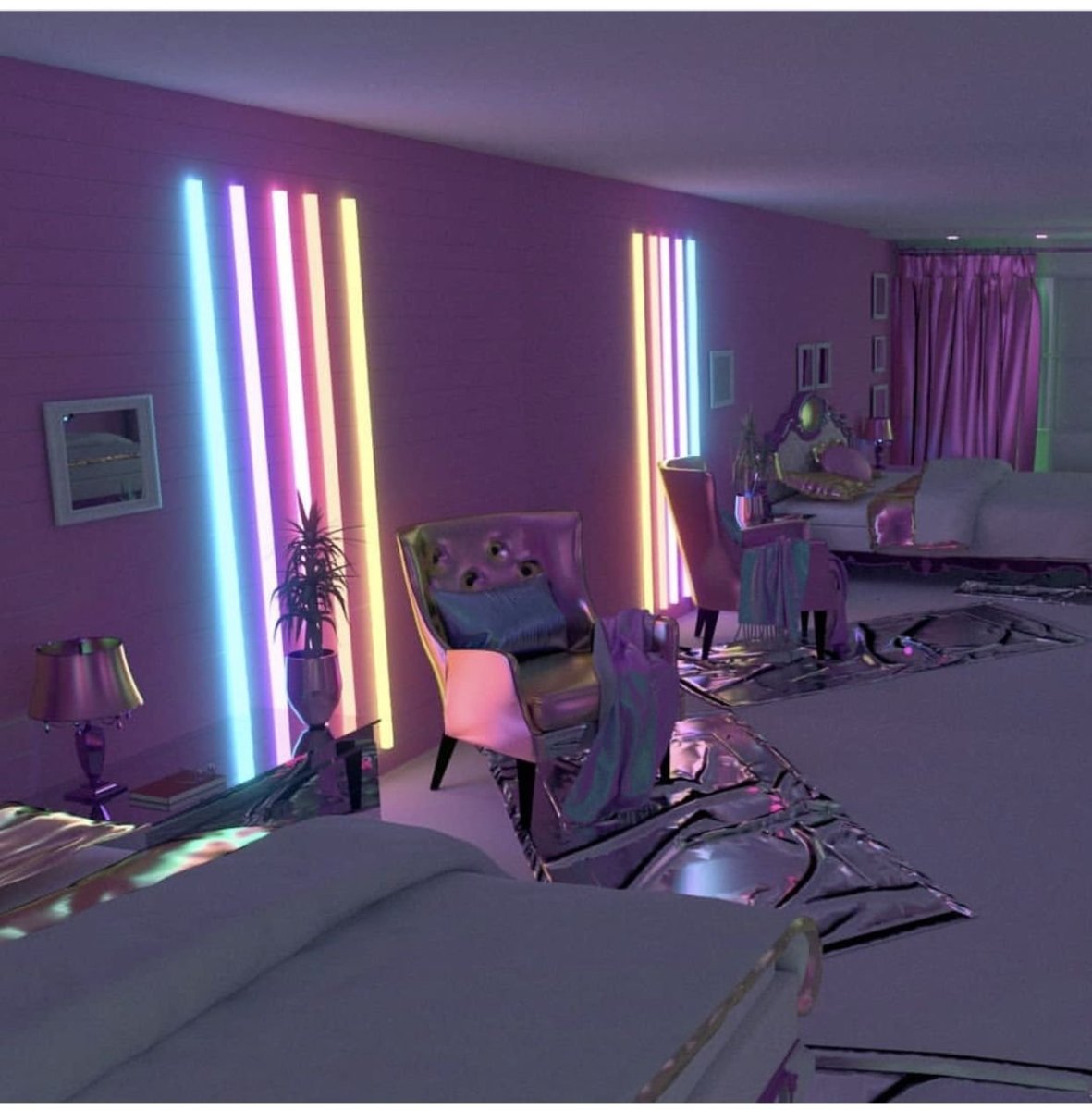 Неоновая сиреневая комната