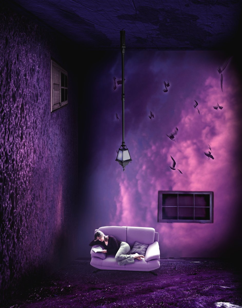 Фиолетовые стены в комнате