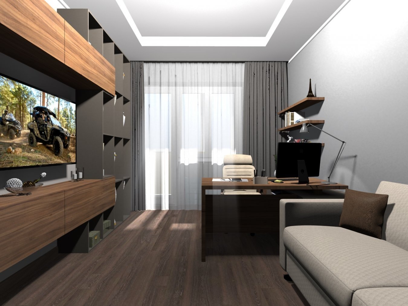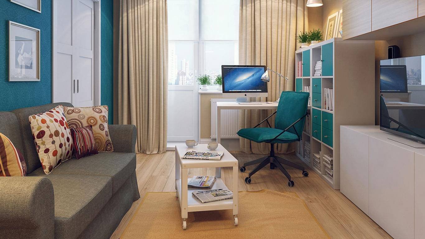 Планировка гостиной с компьютерным столом