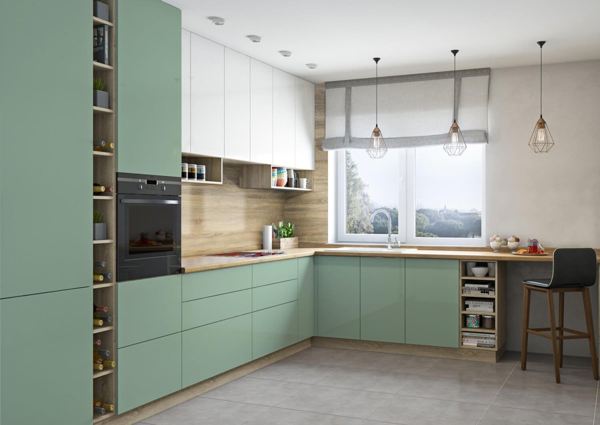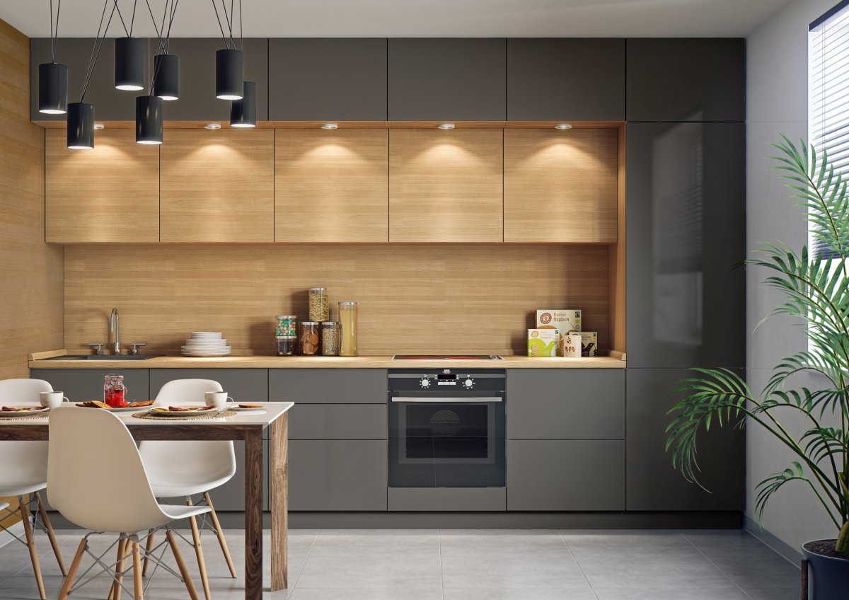 Кухонный гарнитур 1400 Модерн дуб сонома/груша глянец/графит глянец