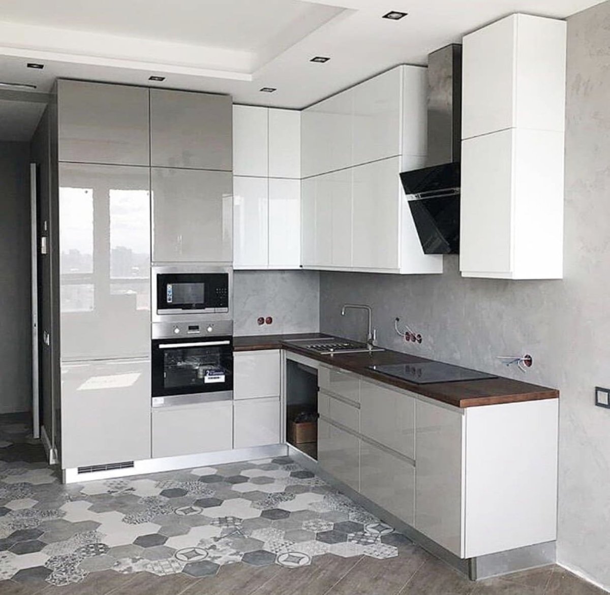 Серая глянцевая кухня