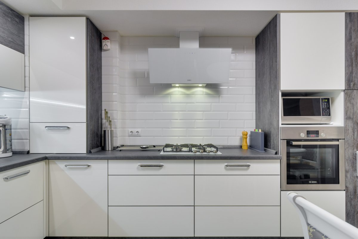Кухня с белой бытовой техникой