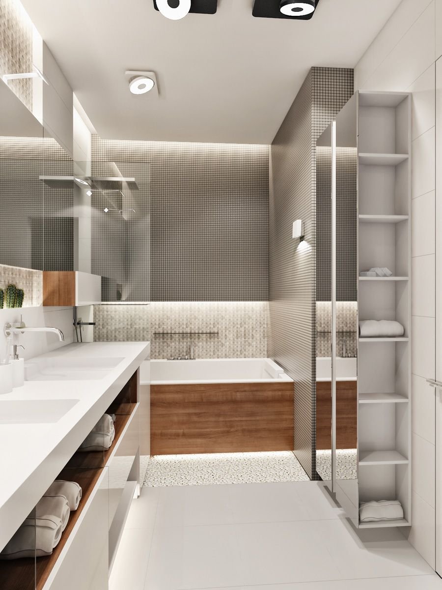 Дизайн прямоугольной ванной комнаты