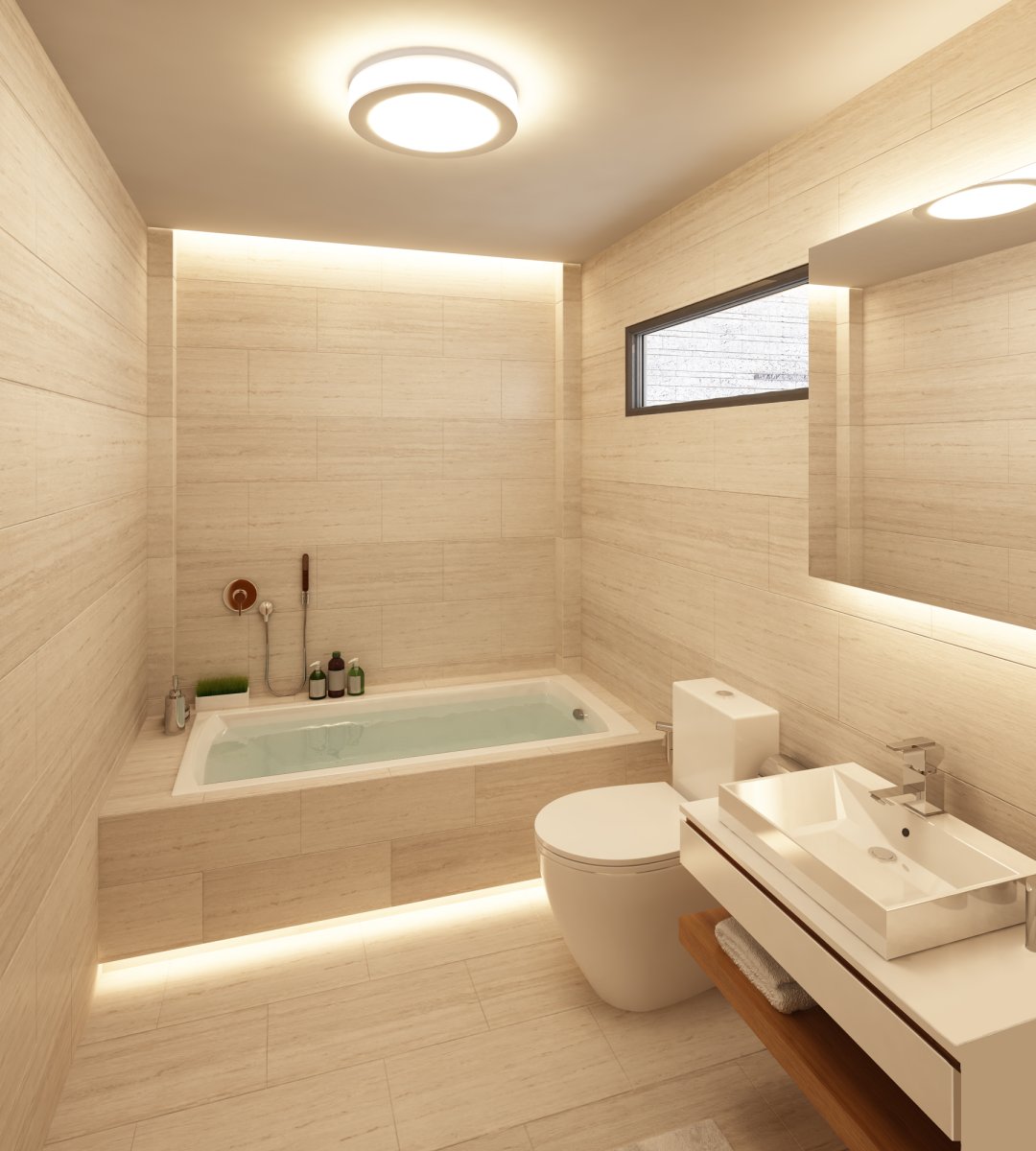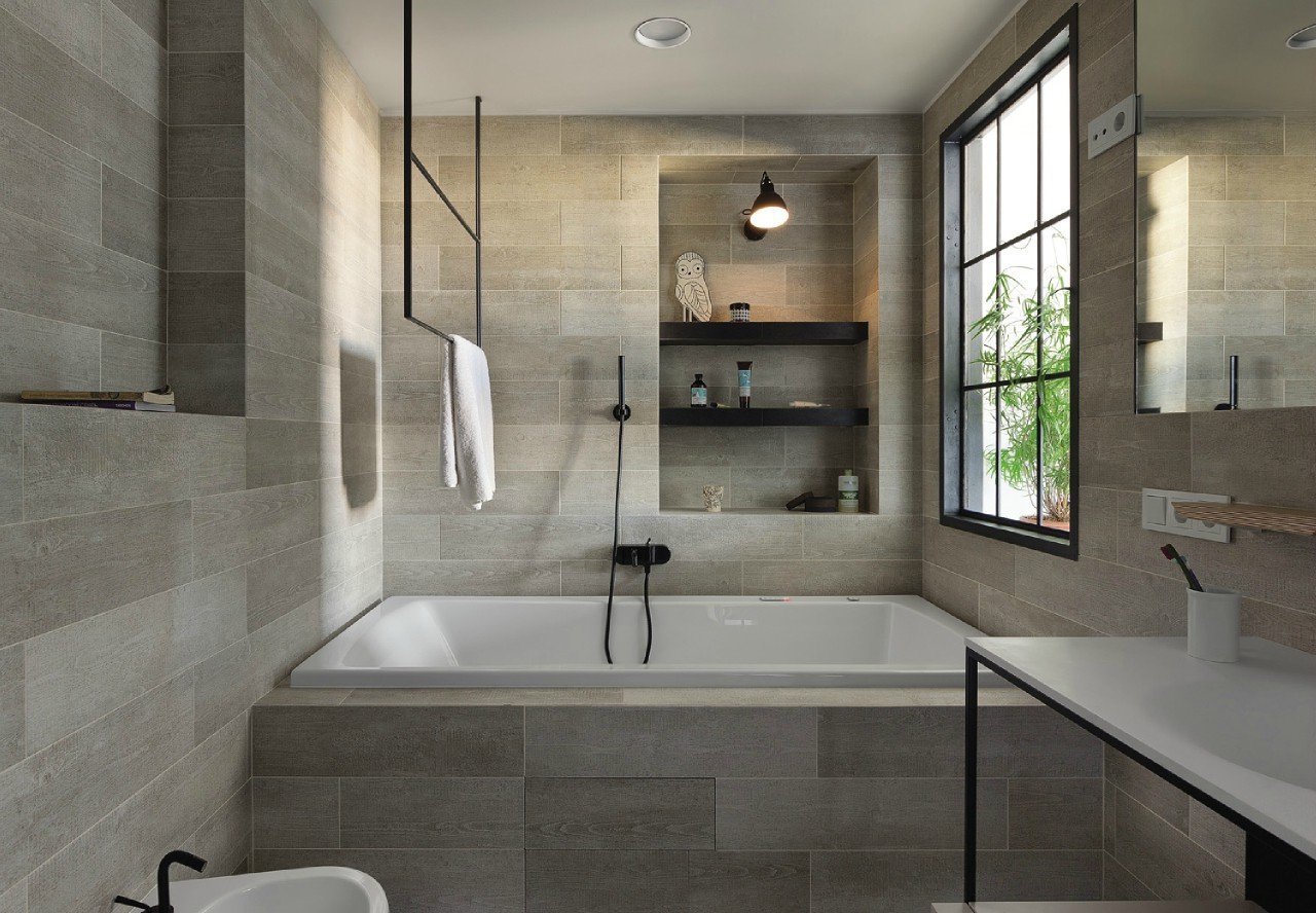 Современная ванная с окном