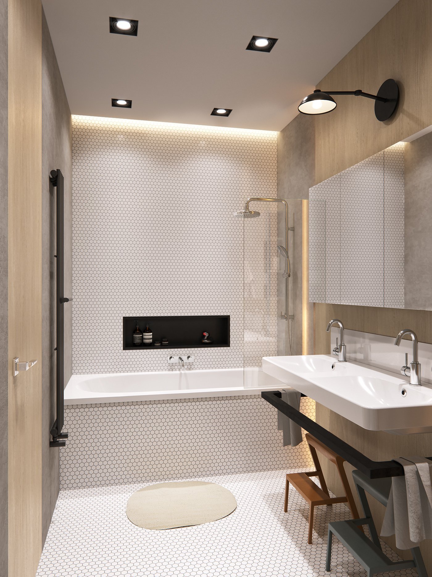 Интерьер с прямоугольной ванной