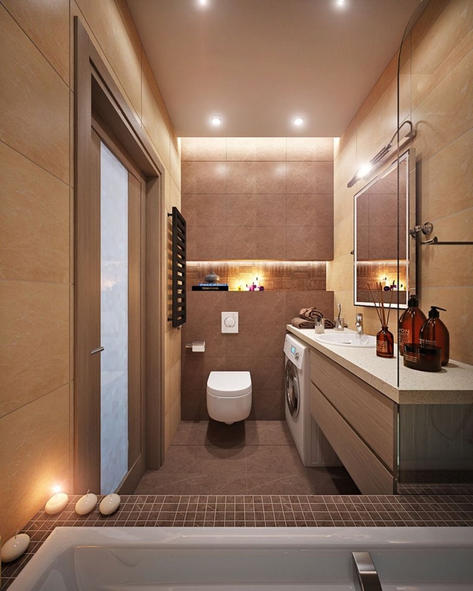 Интерьер ванной комнаты совмещенной