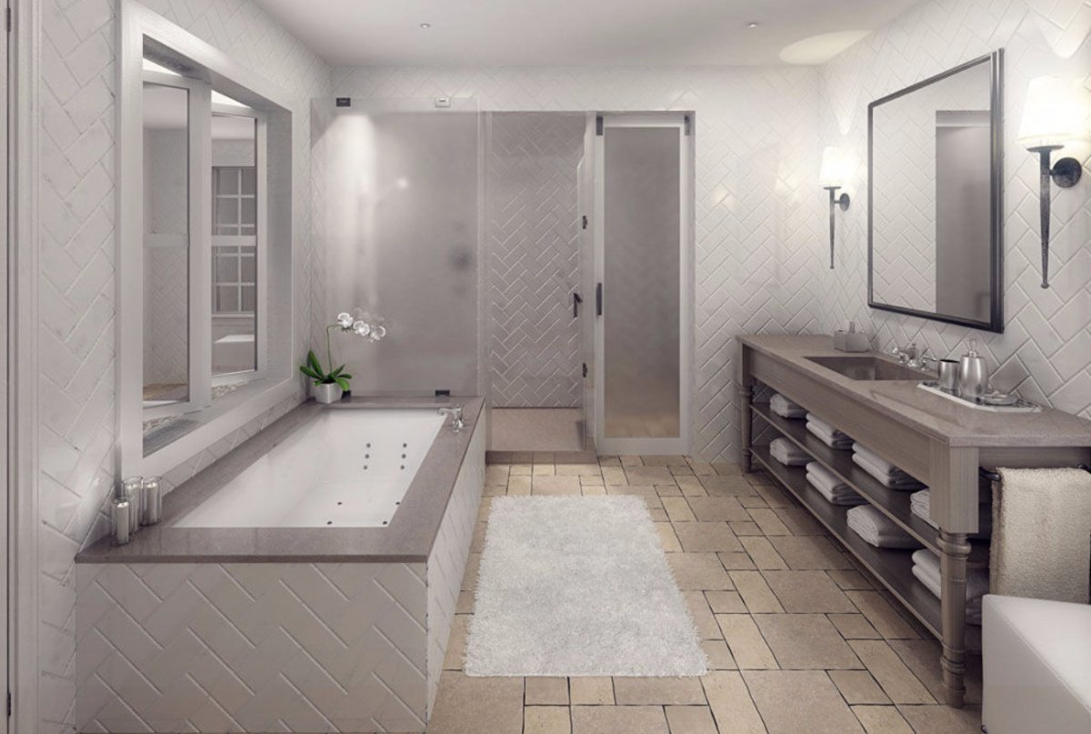 Прямоугольная ванна в интерьере