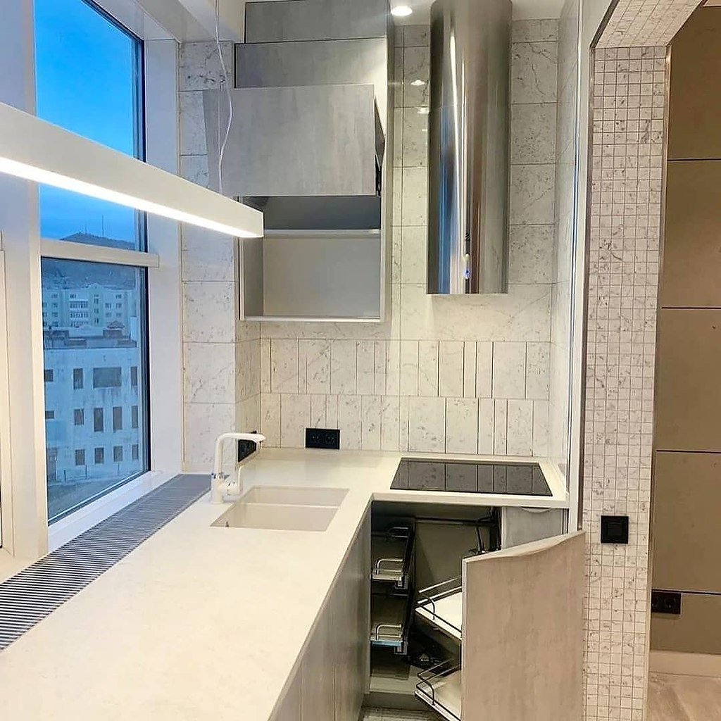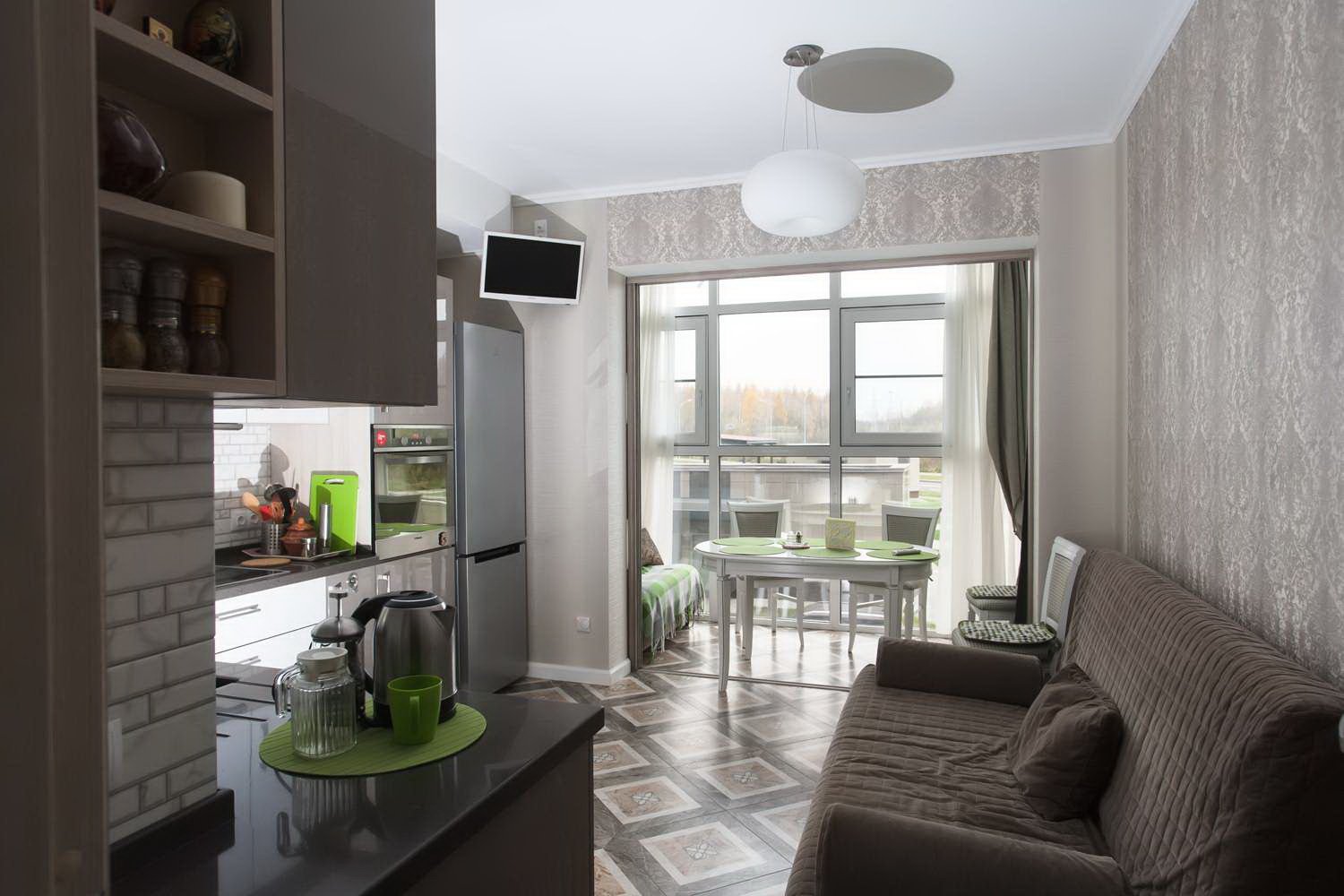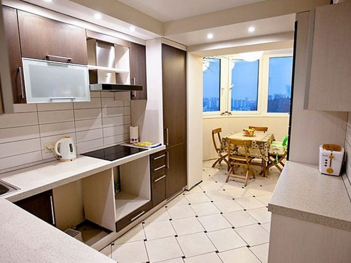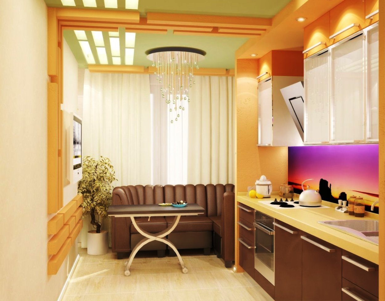 Интерьер кухни 11м2 с выходом на балкон с диваном