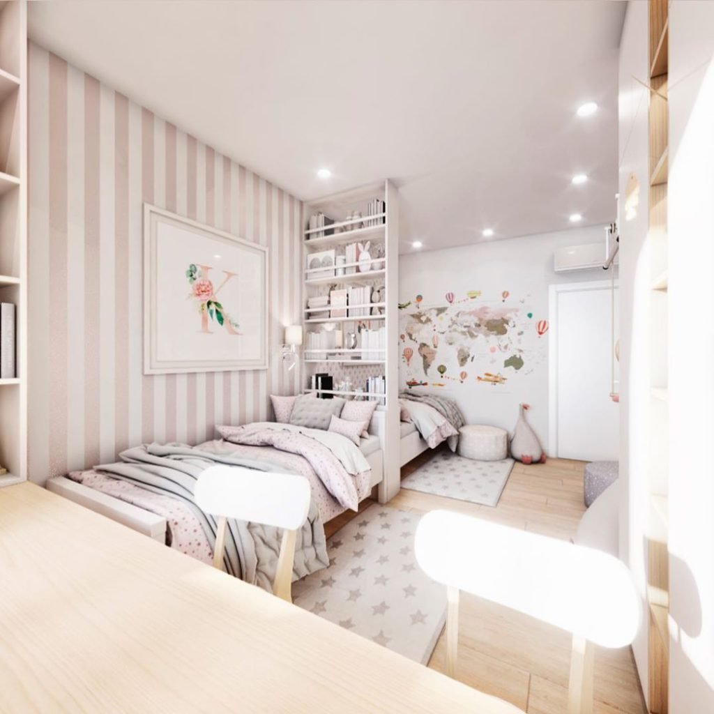 Зонирование детской комнаты для двух девочек