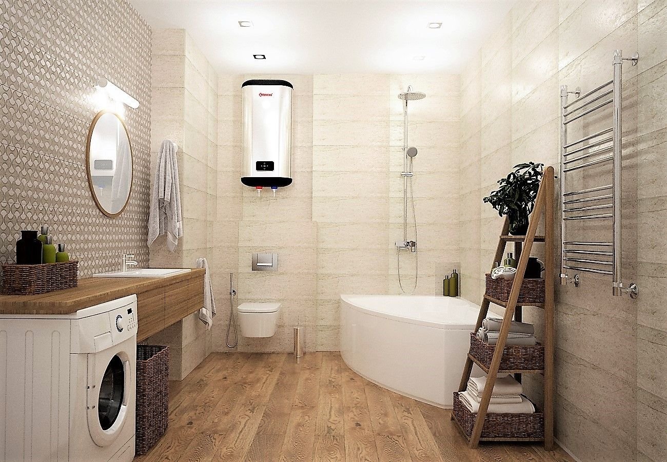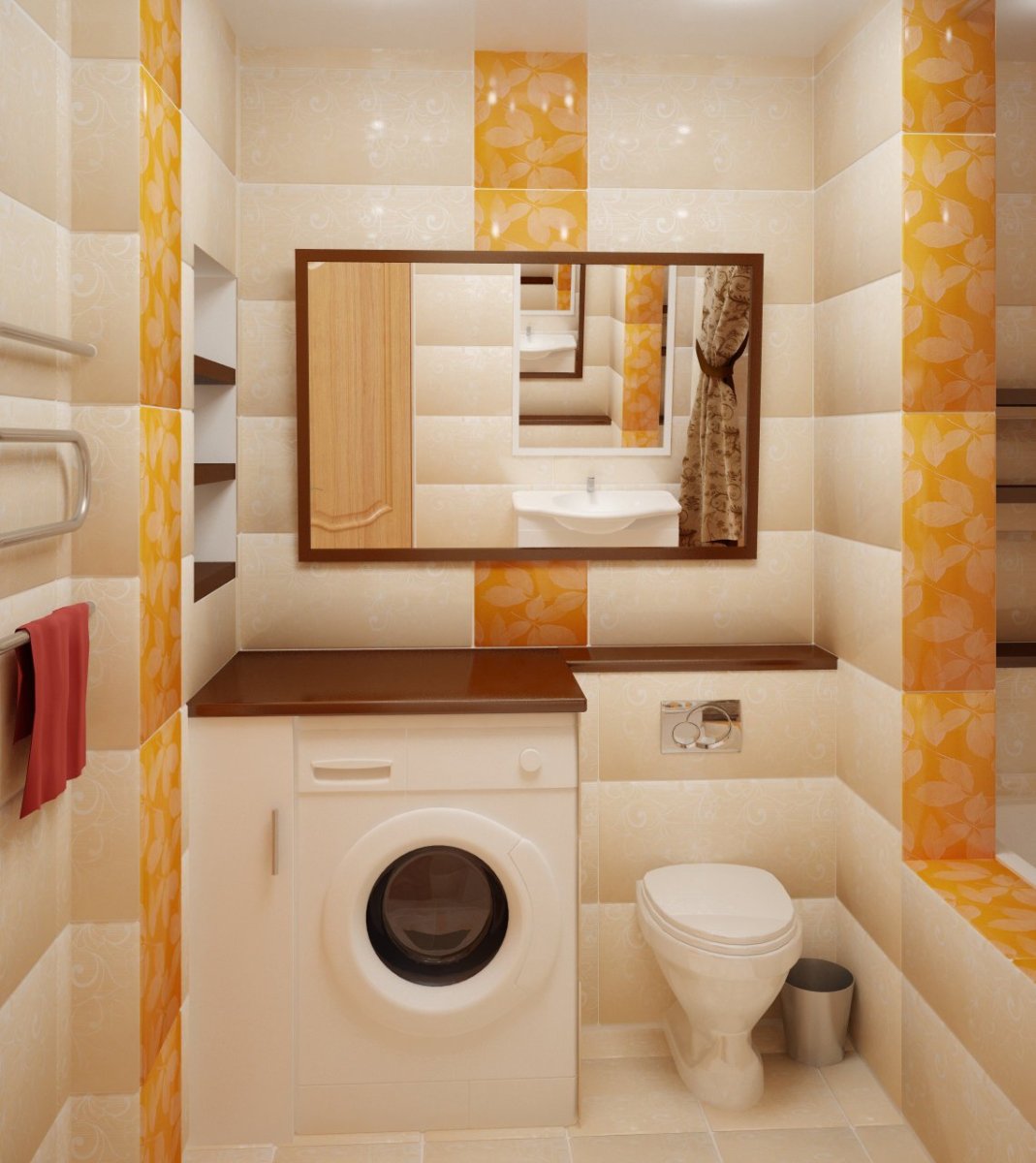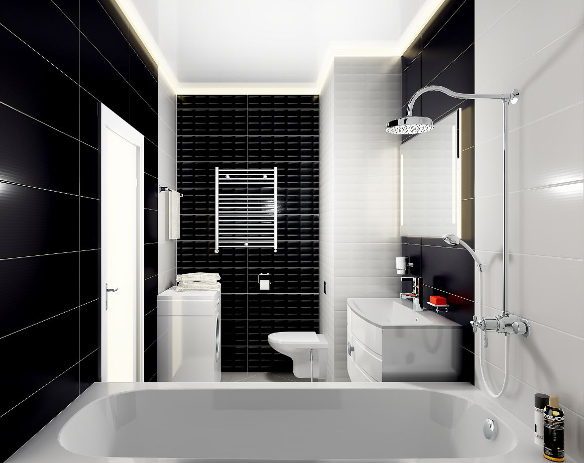 Интерьер совмещенного санузла с ванной и стиральной машиной