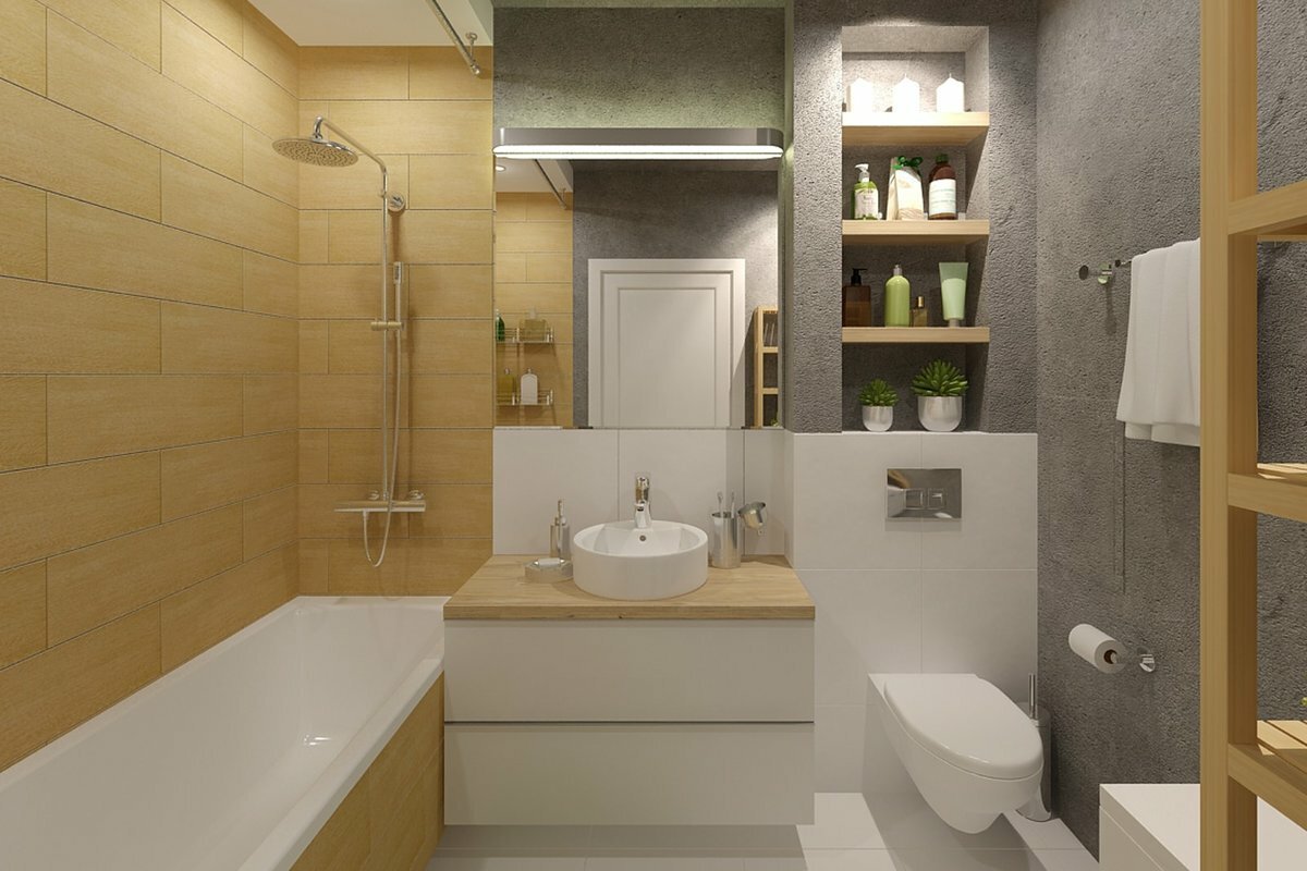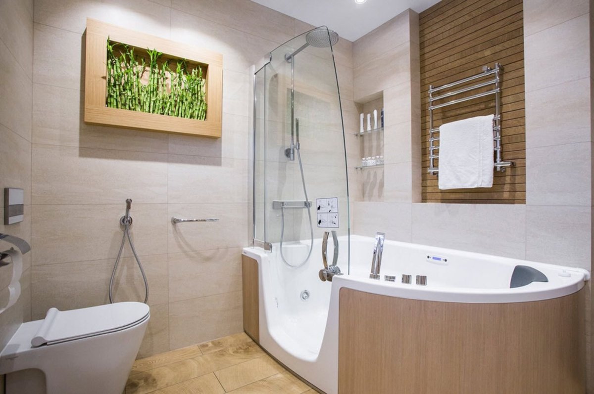 Интерьер ванной комнаты совмещенной