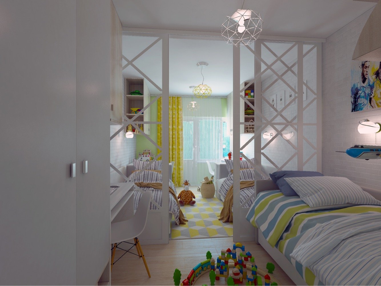 Комната на двоих детей с перегородкой