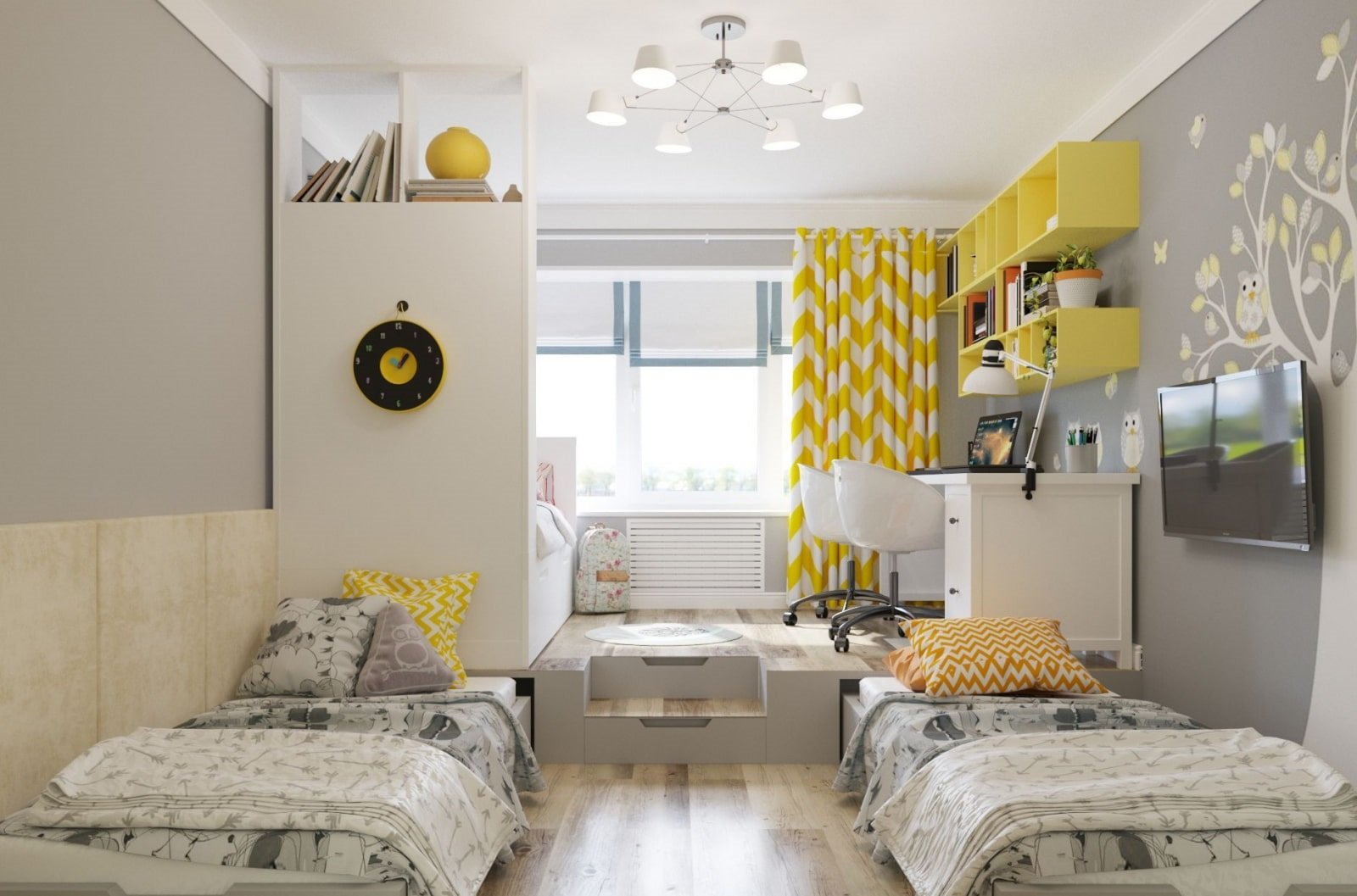 Комната для двоих разнополых подростков 20 кв.м с перегородкой