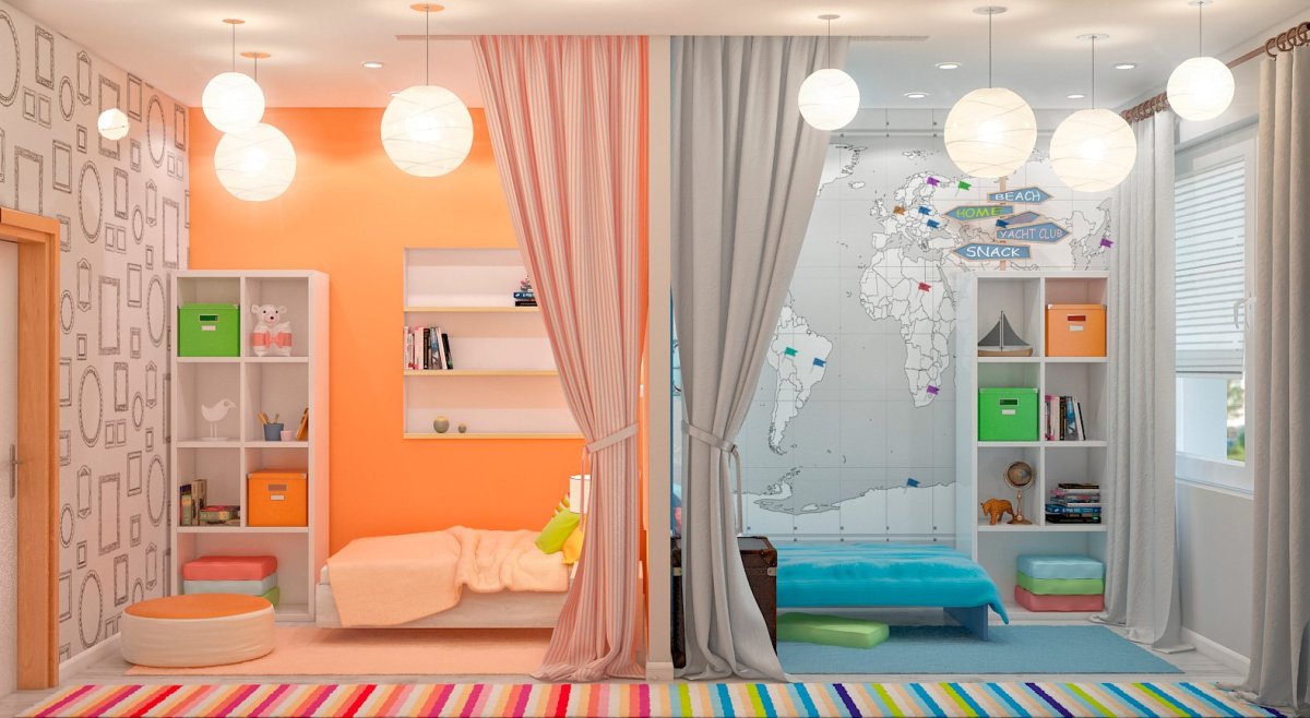 Зонирование комнаты для разнополых детей