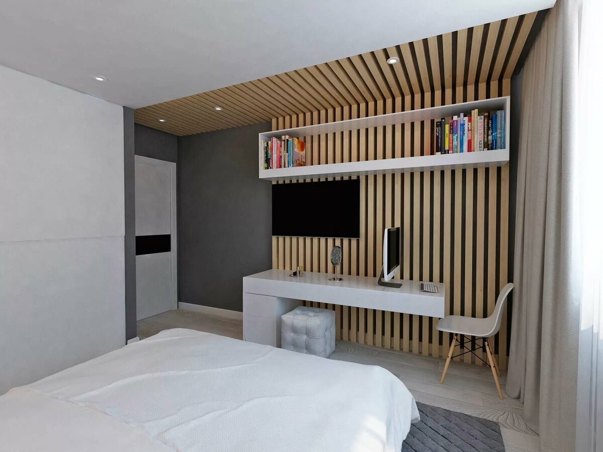 Деревянные рейки в спальне