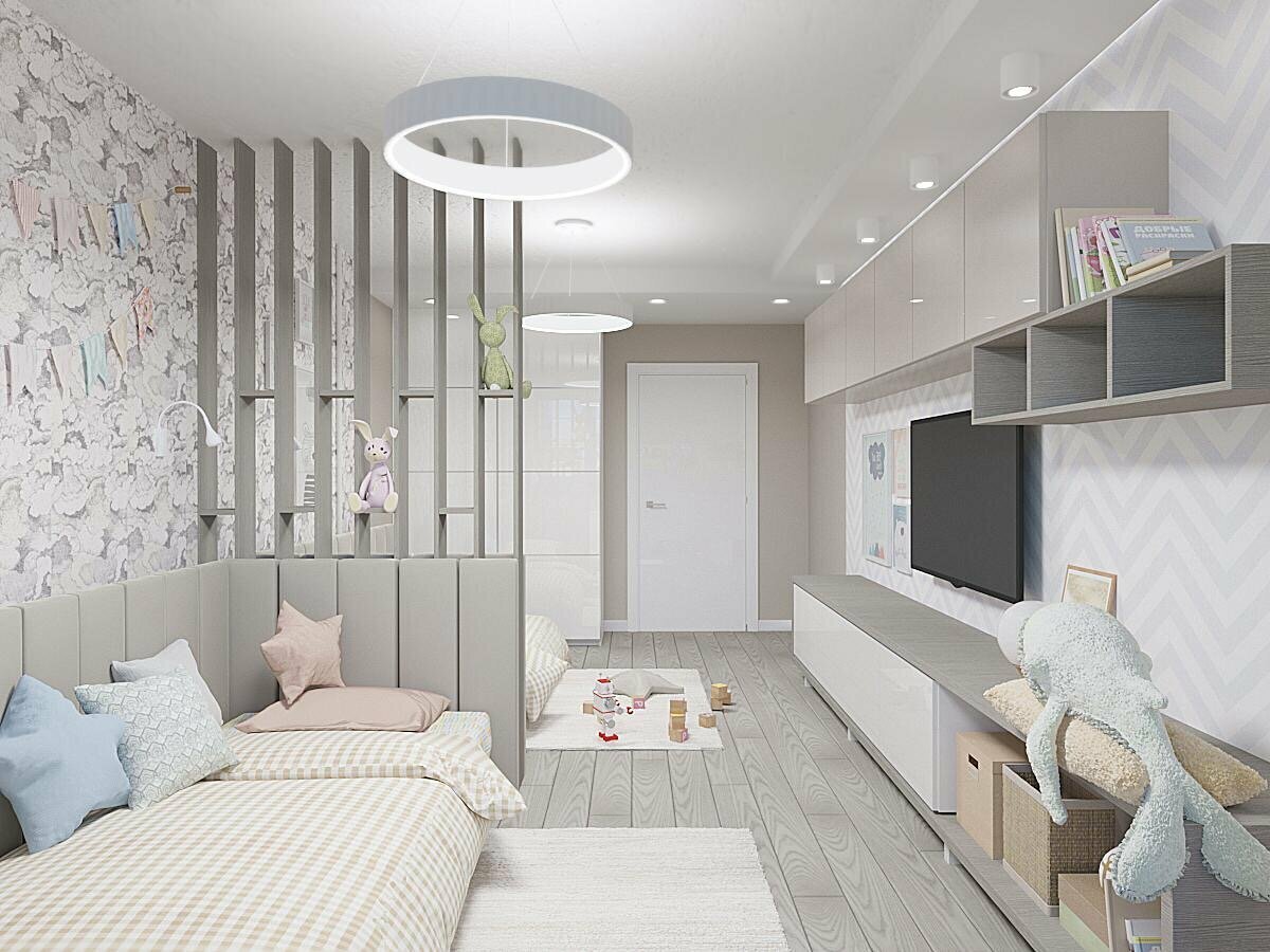 Зонирование детской комнаты для троих разнополых деток
