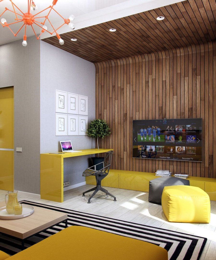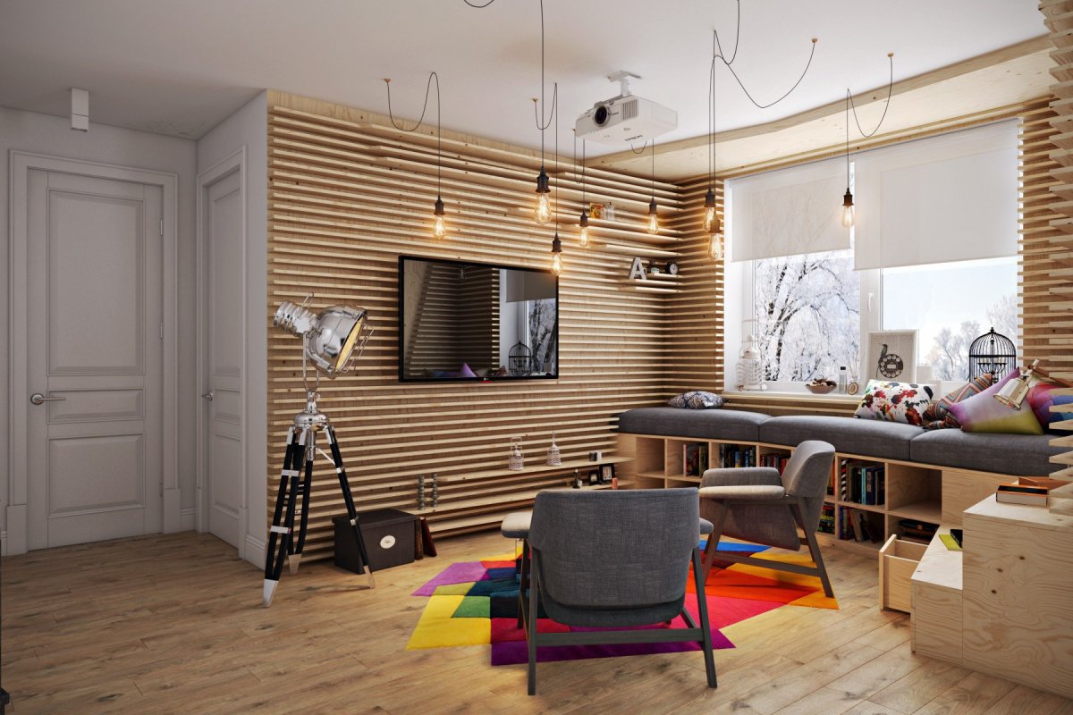 Деревянные панели в гостиной