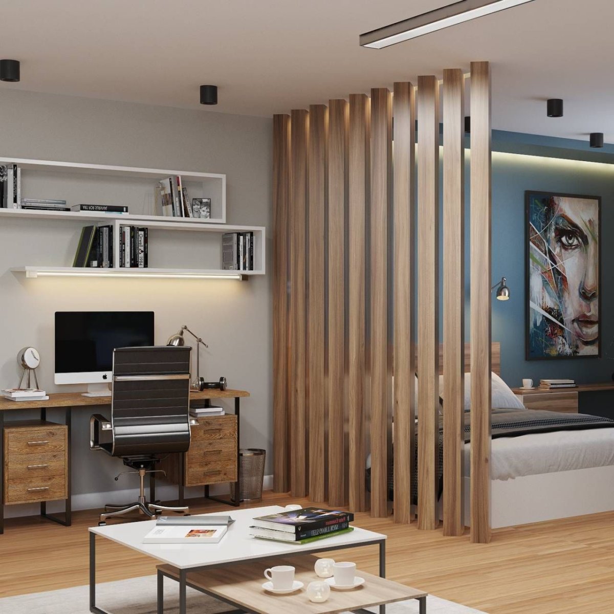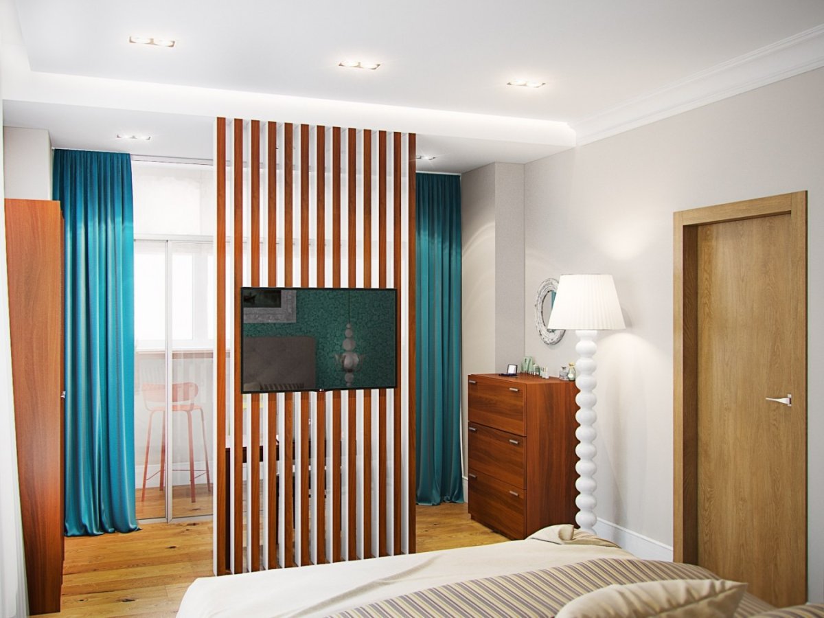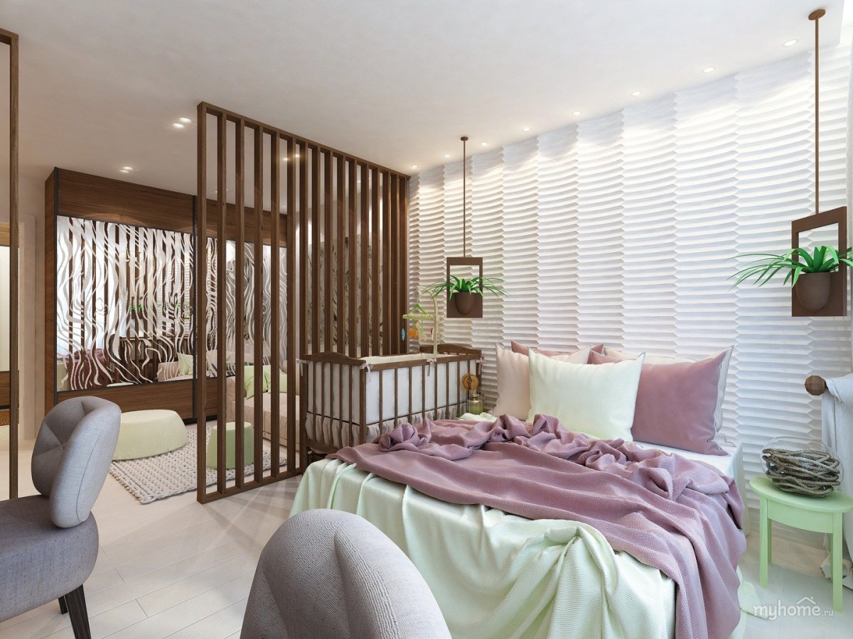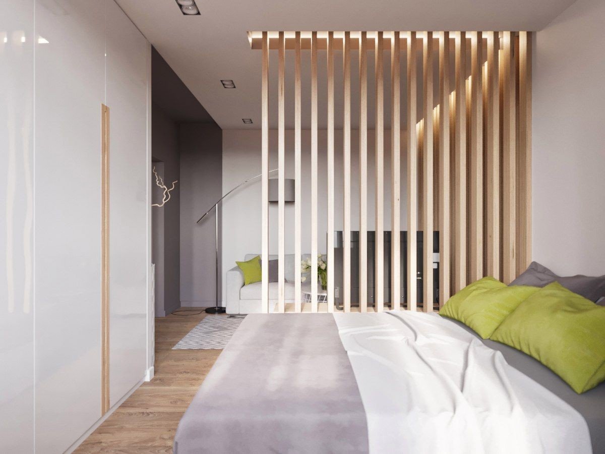 Спальня с перегородкой декоративной
