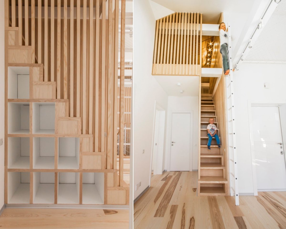 Лестница стеллаж на второй этаж