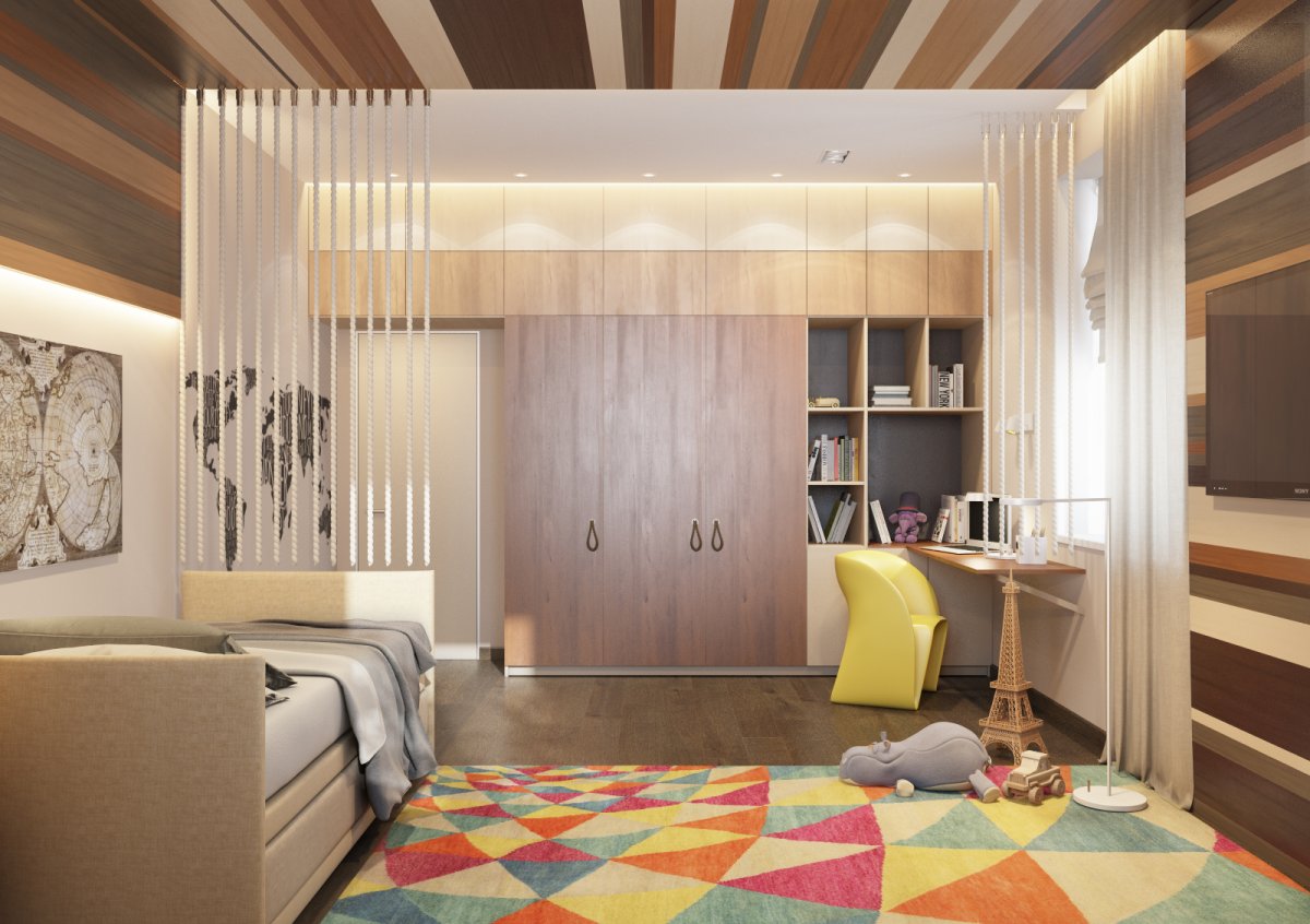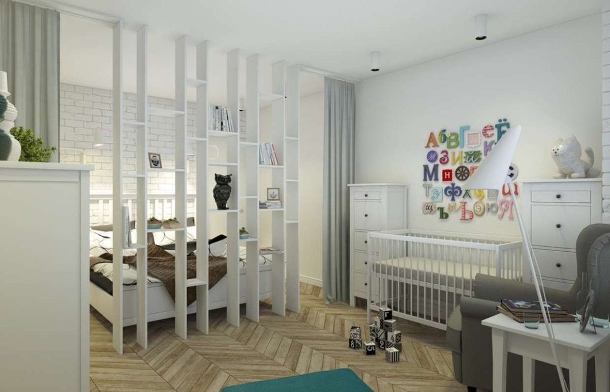 Зонирование комнаты спальня и детская