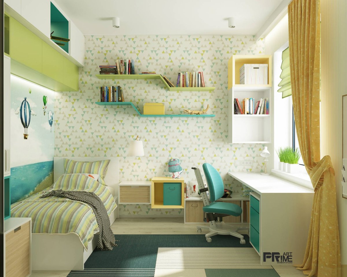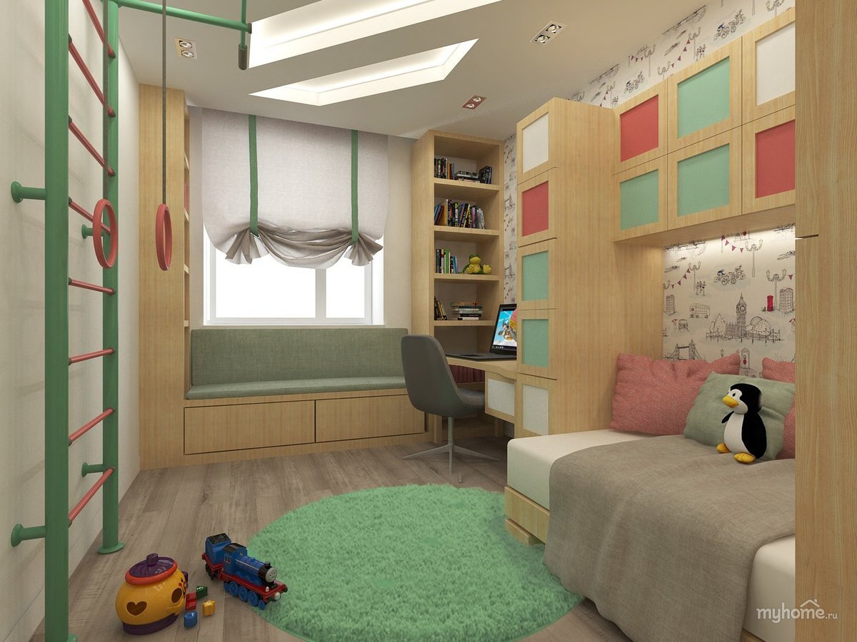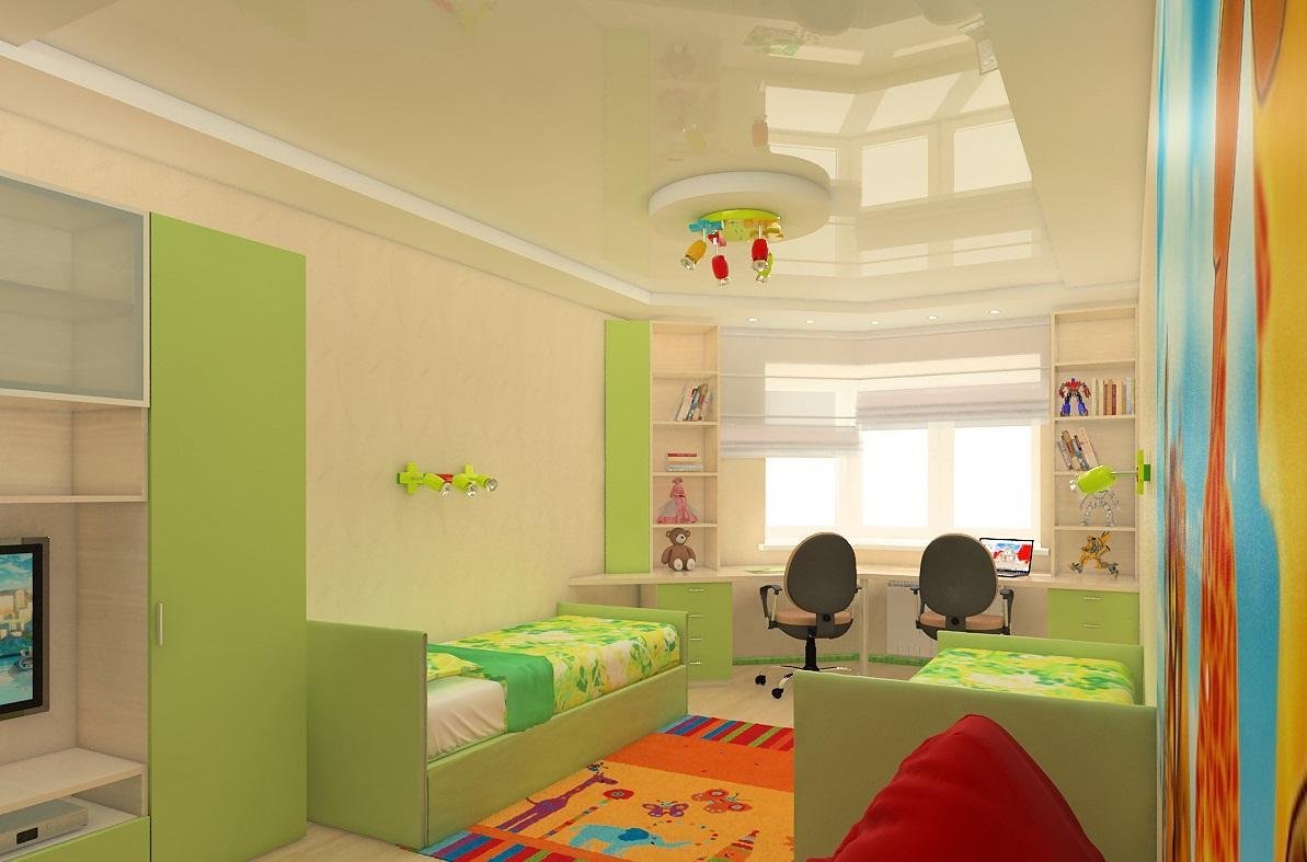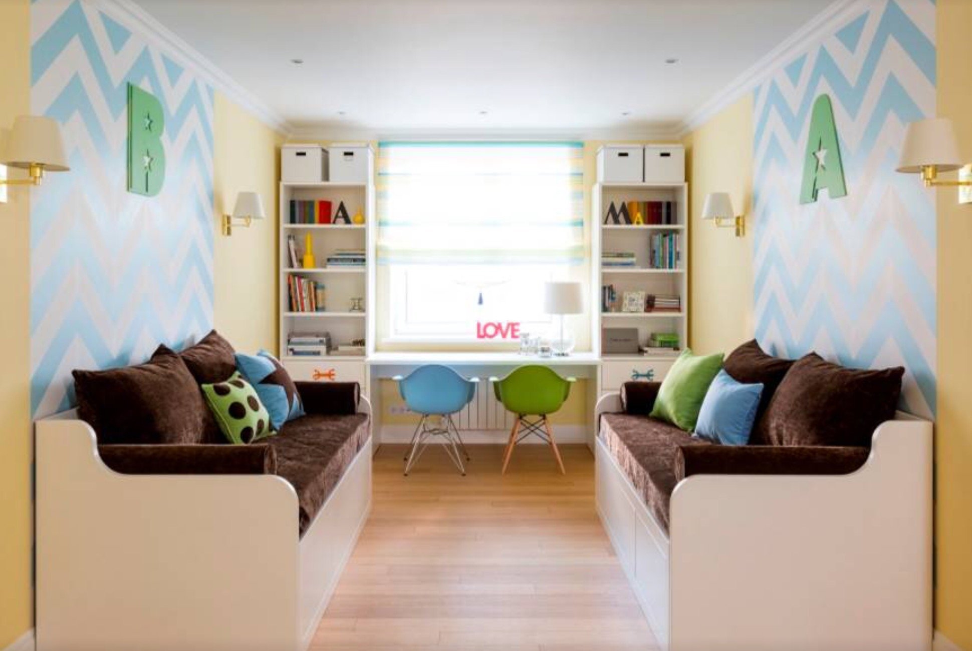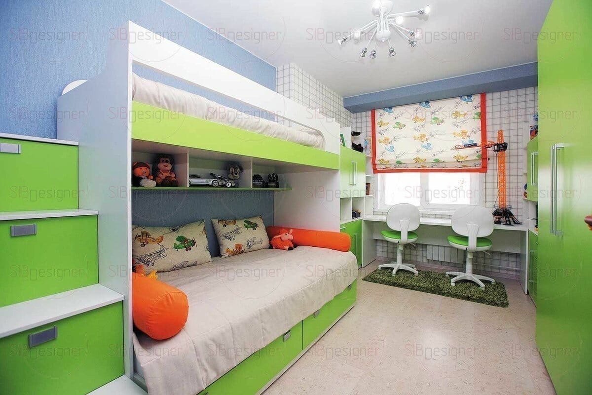 Детская комната для двоих разнополых с двухъярусной кроватью