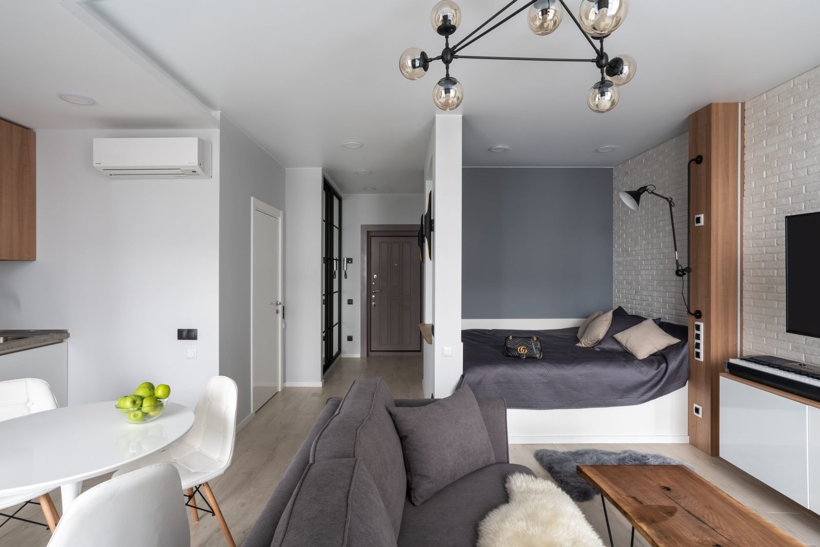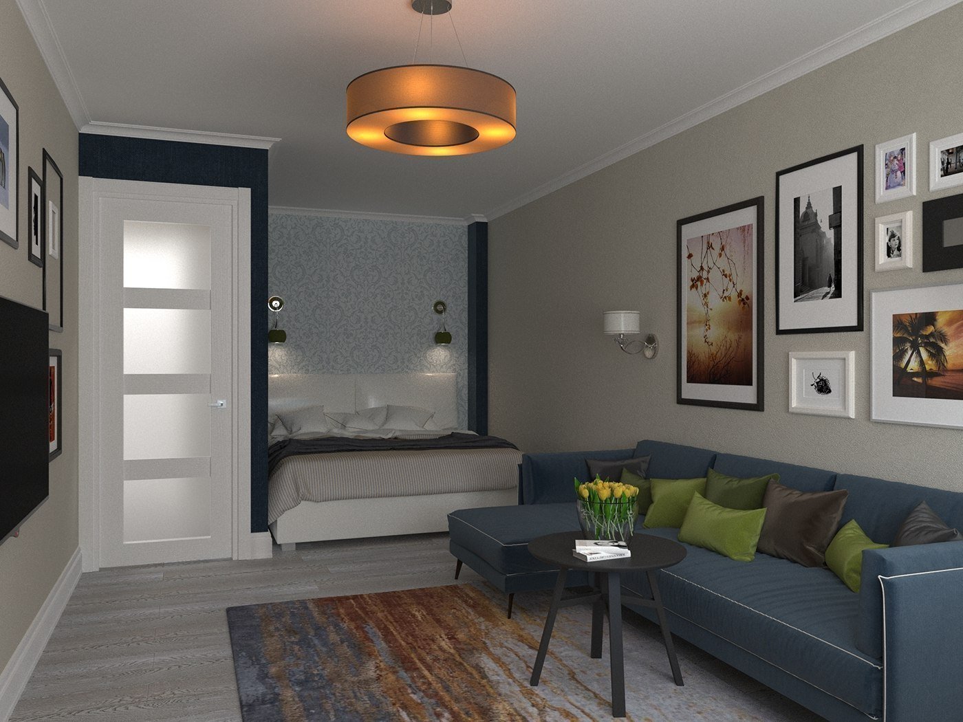 Интерьер однокомнатной квартиры 35 м2 с нишей
