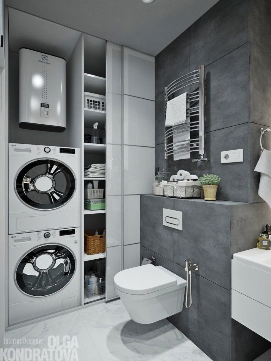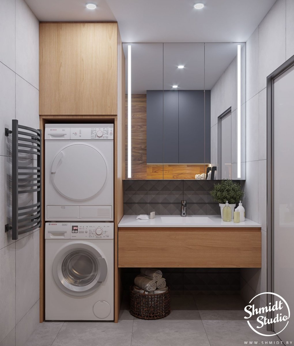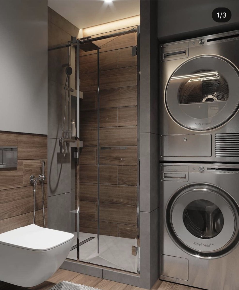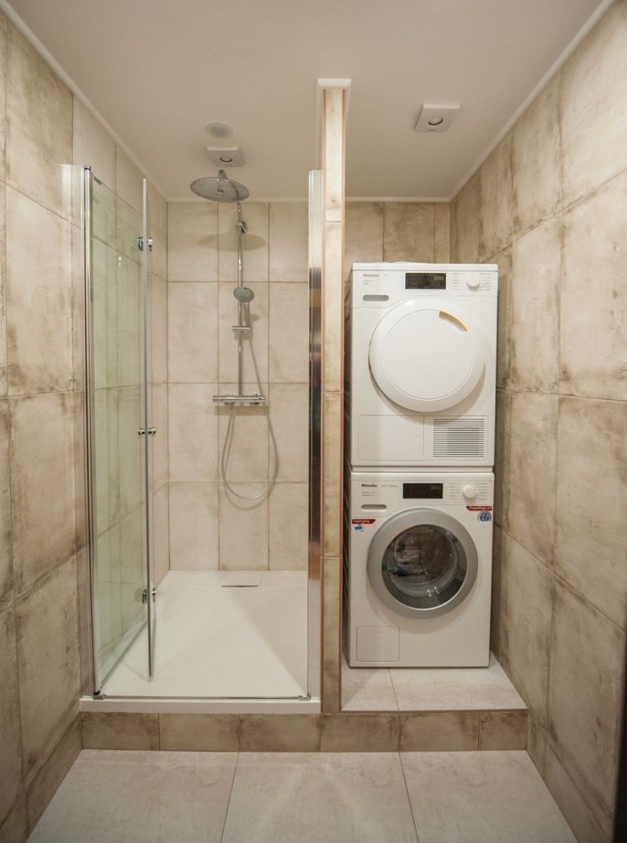 Ванные комнаты с душевой кабиной стиральной и сушильной машины