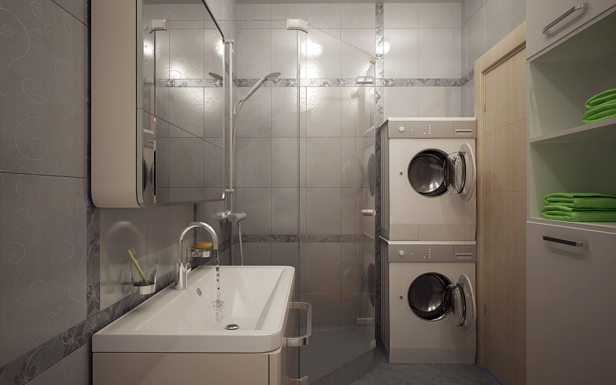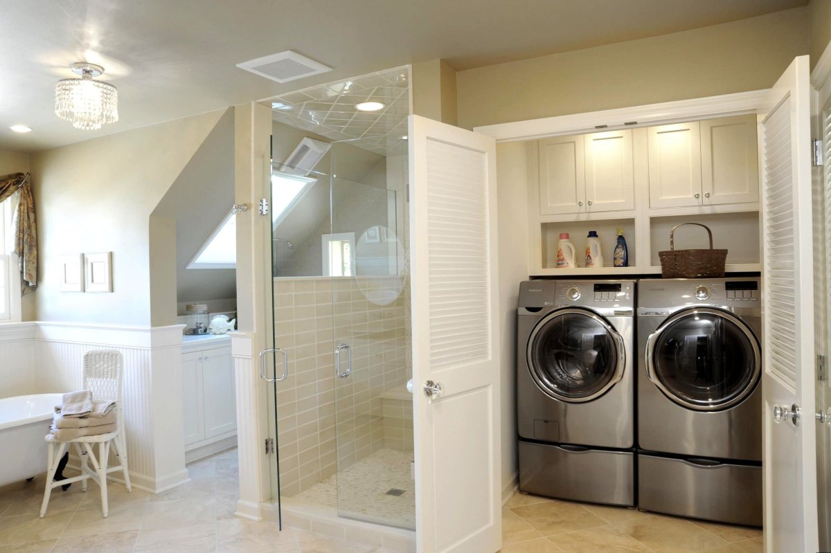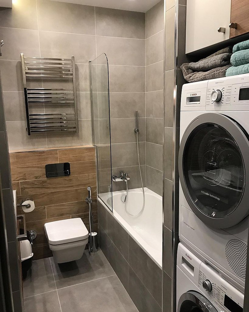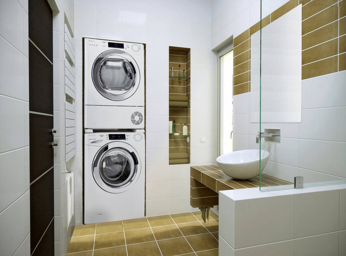 Ванные комнаты с душевой кабиной стиральной и сушильной машины