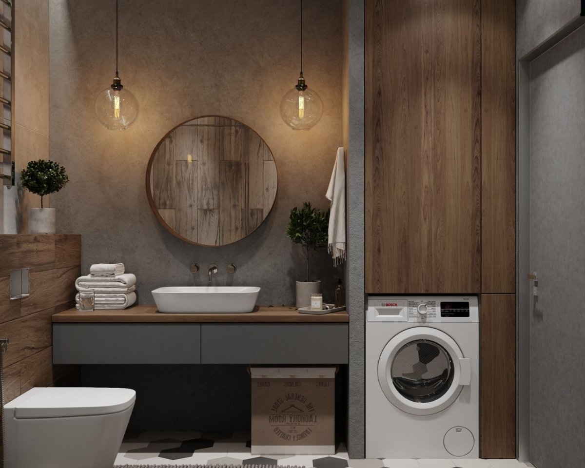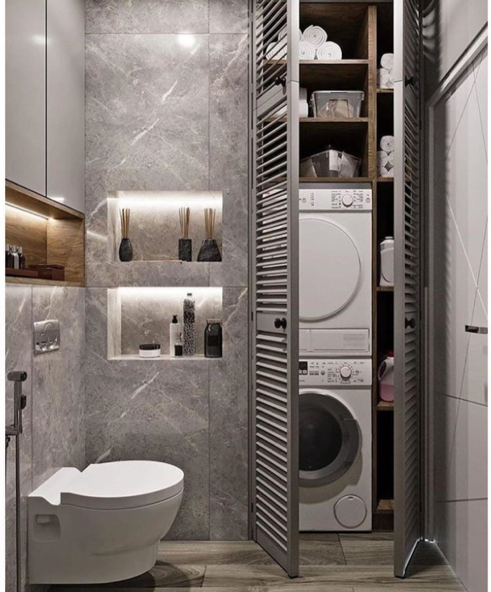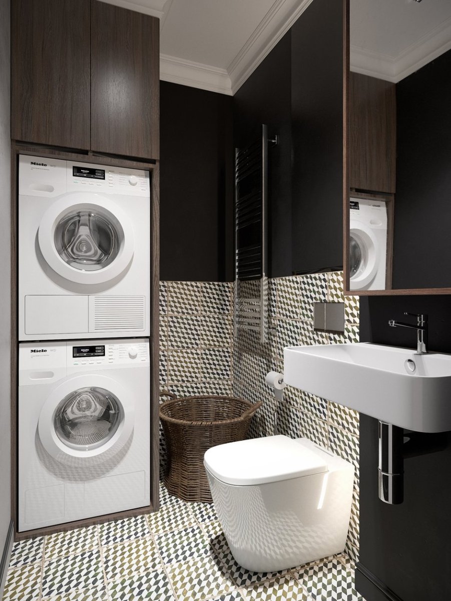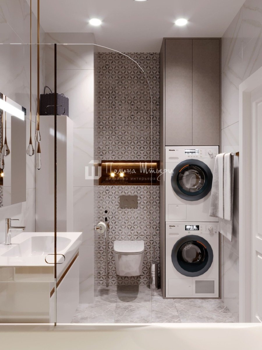 Ванные комнаты с душевой кабиной стиральной и сушильной машины