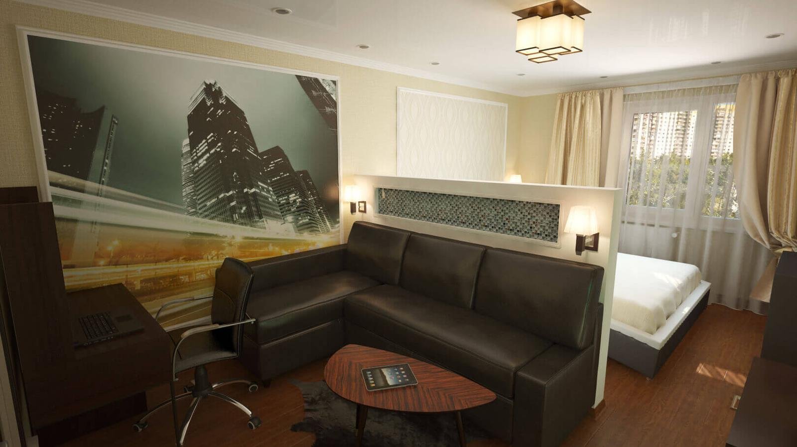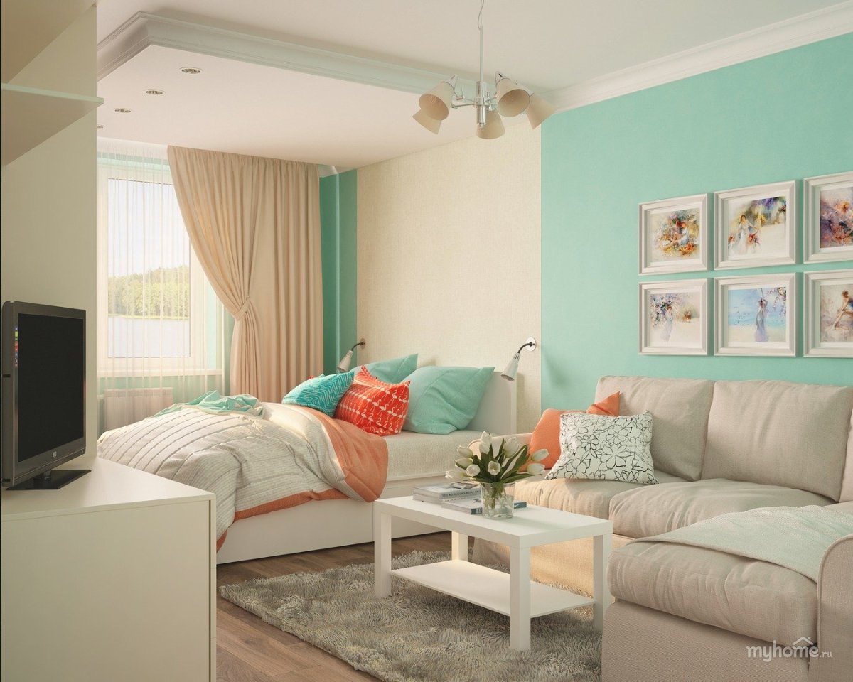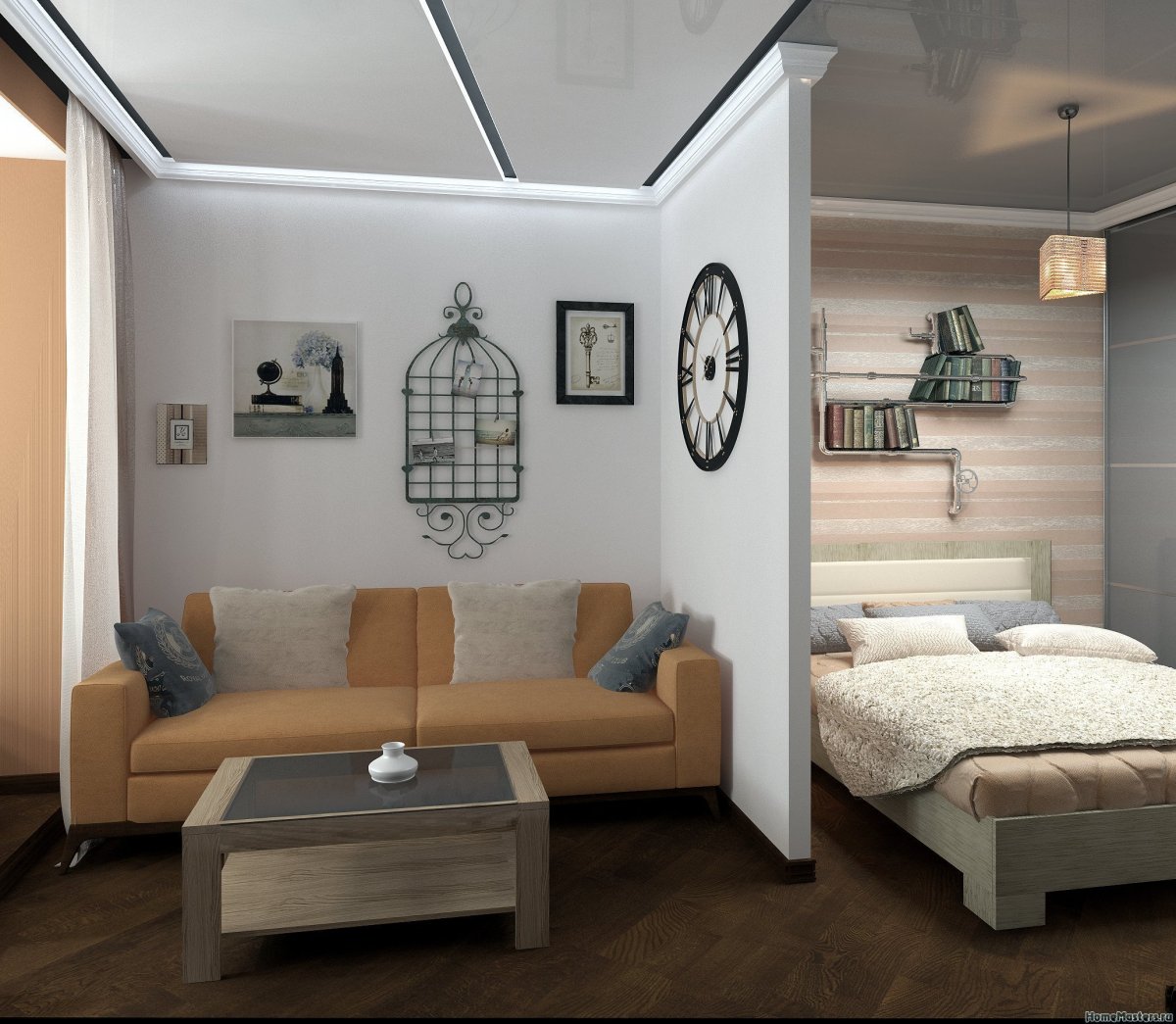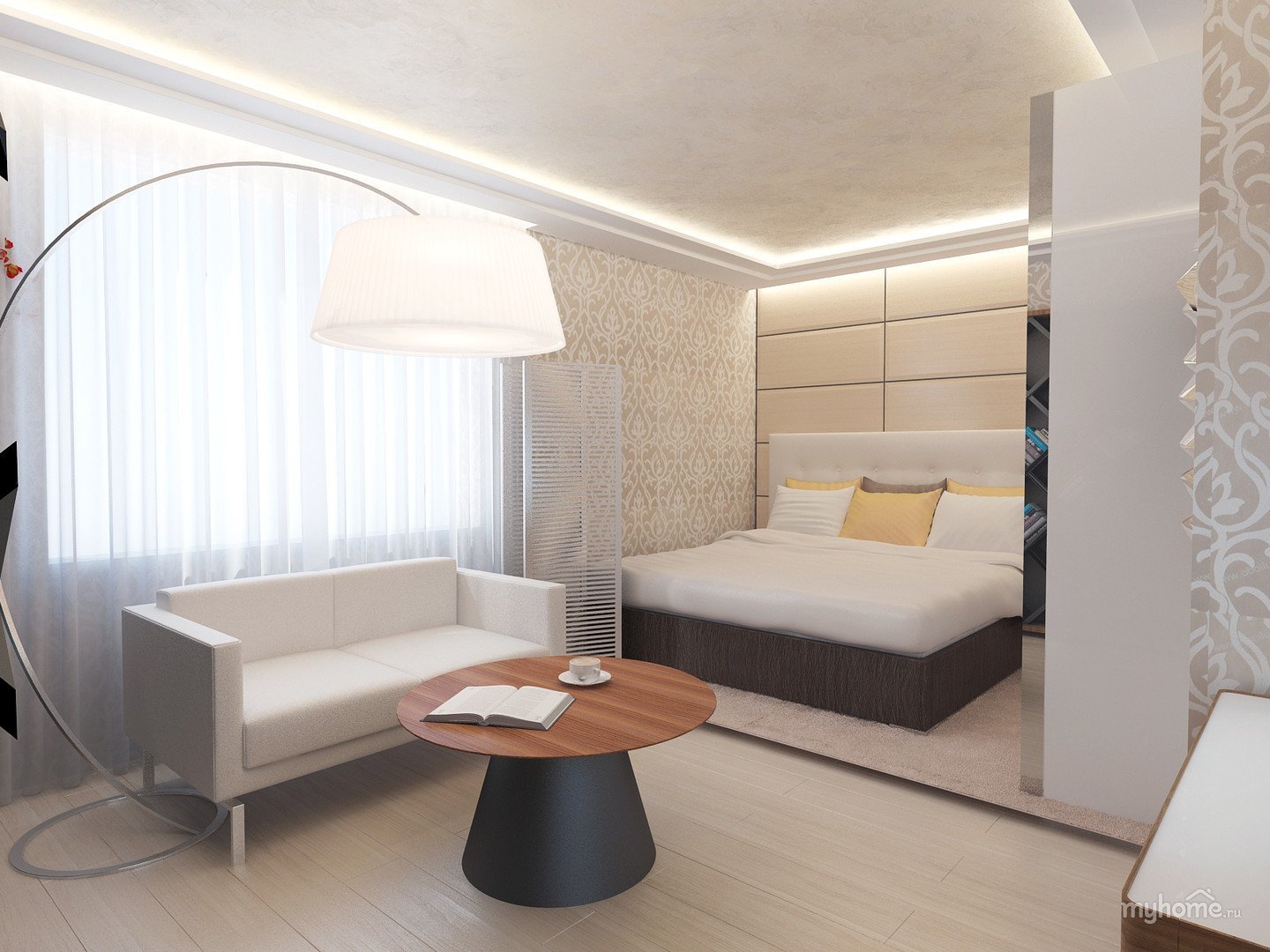 Зонирование спальни и гостиной в одной комнате 17 кв.м