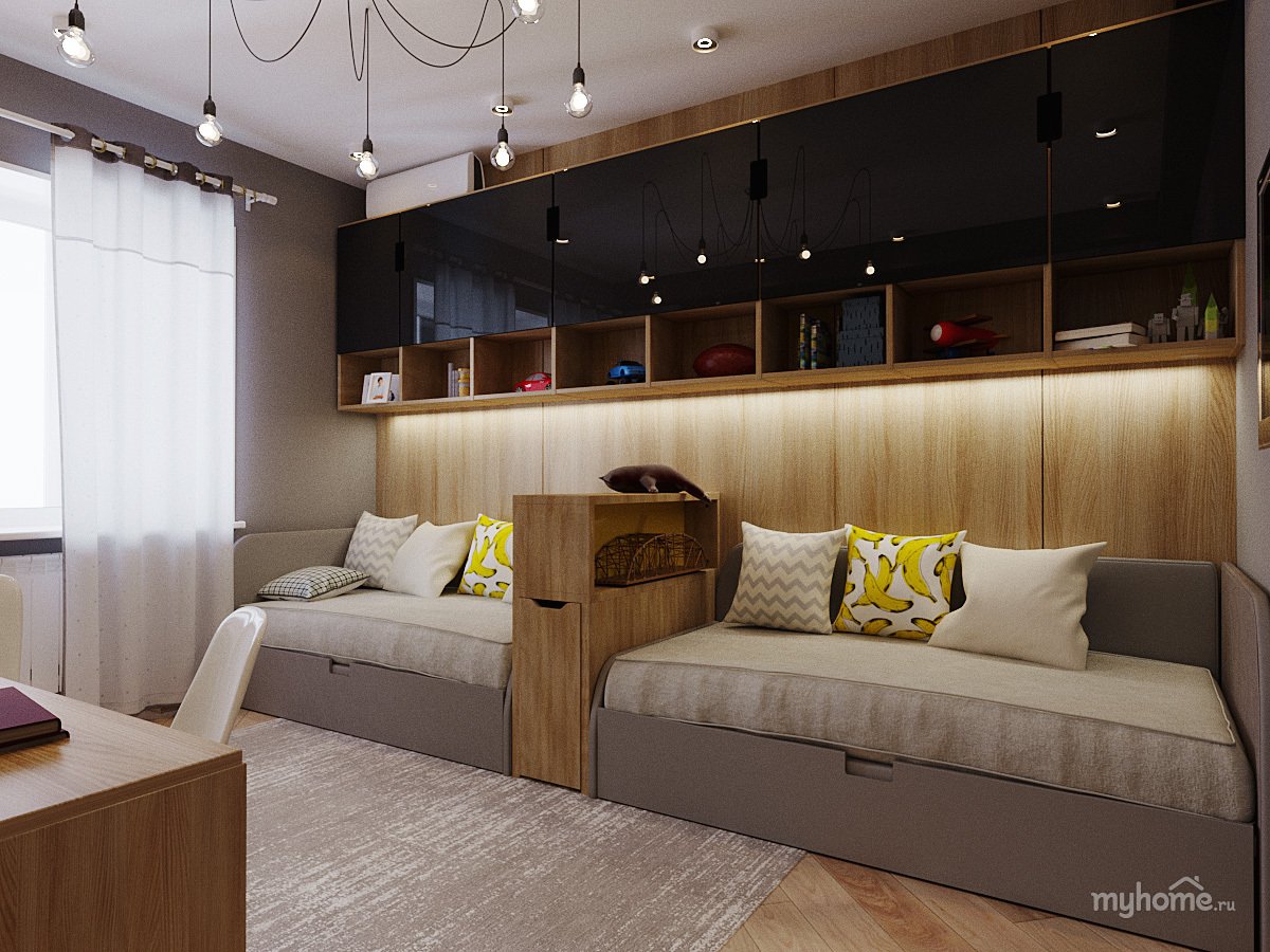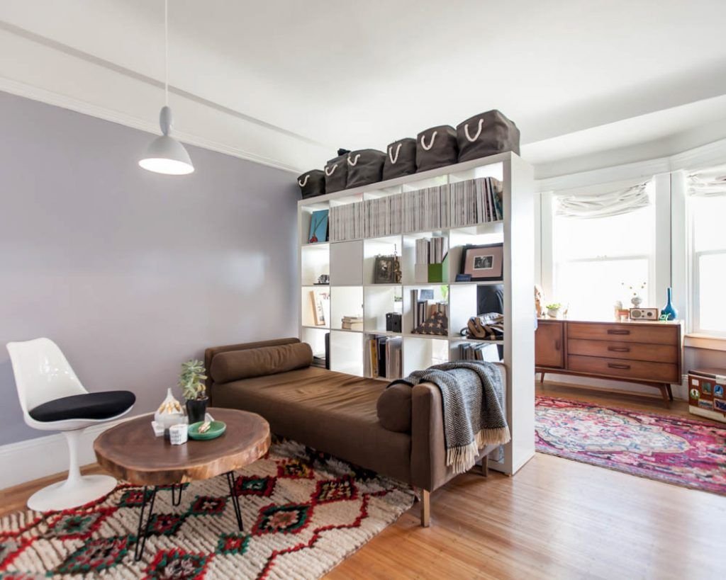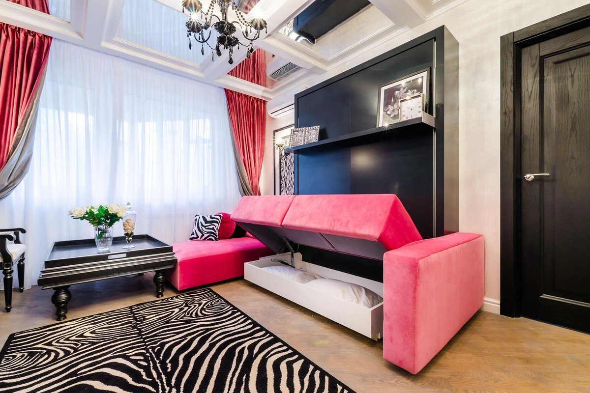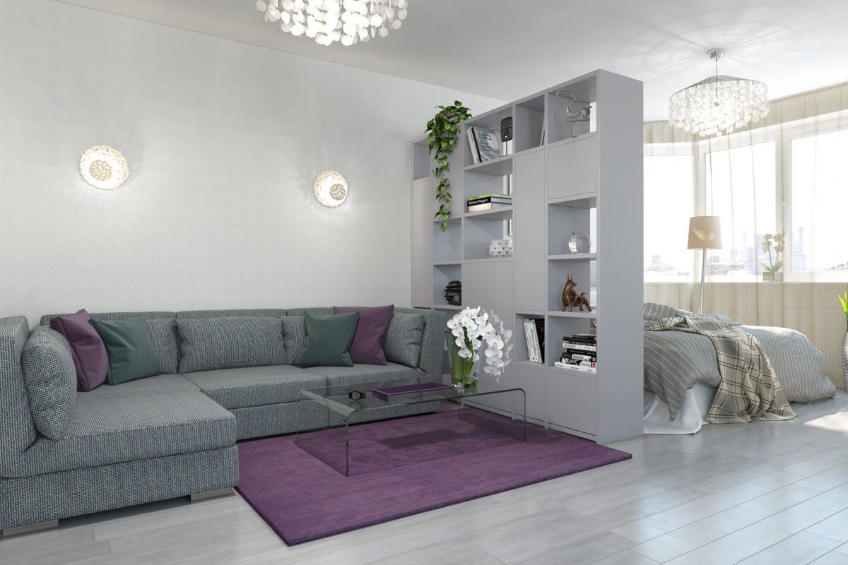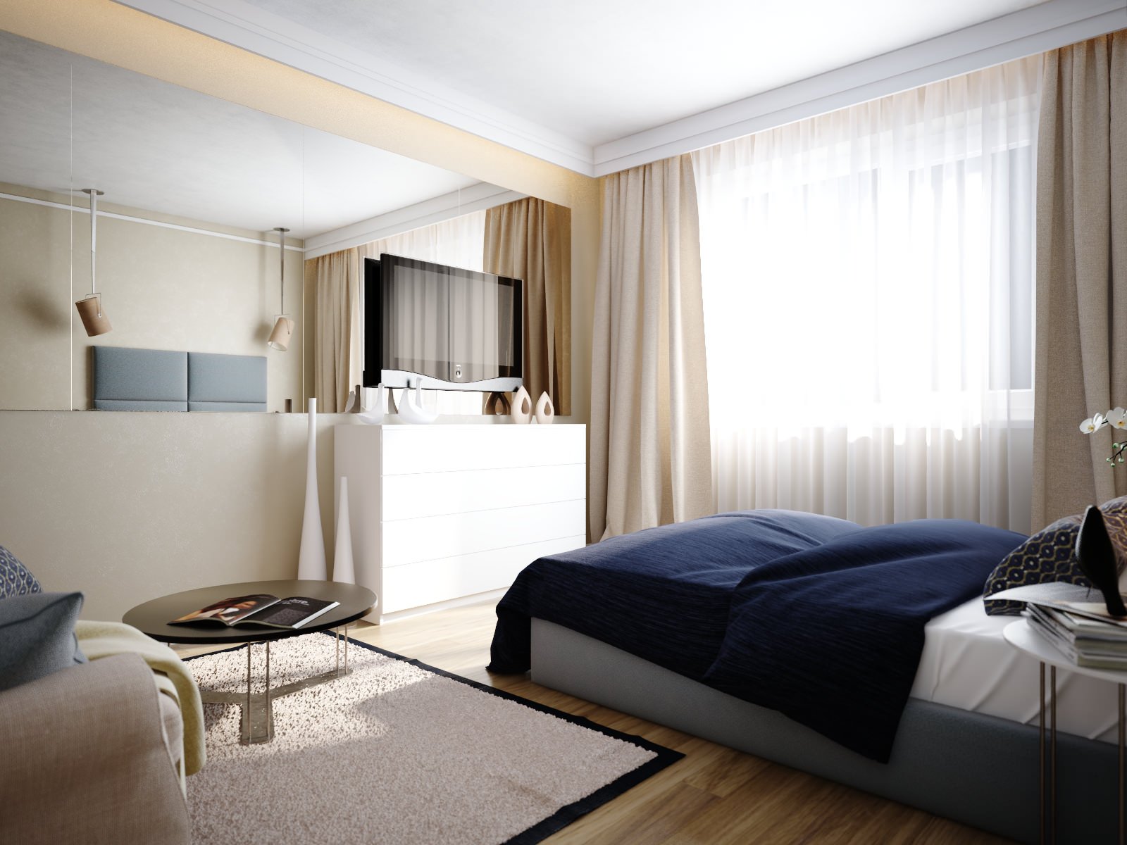 Зонирование спальни и гостиной в одной комнате 17 кв.м