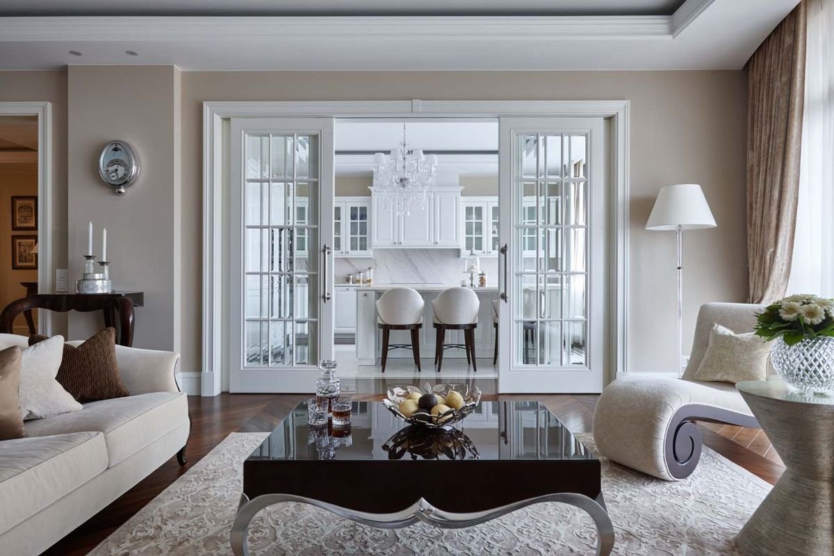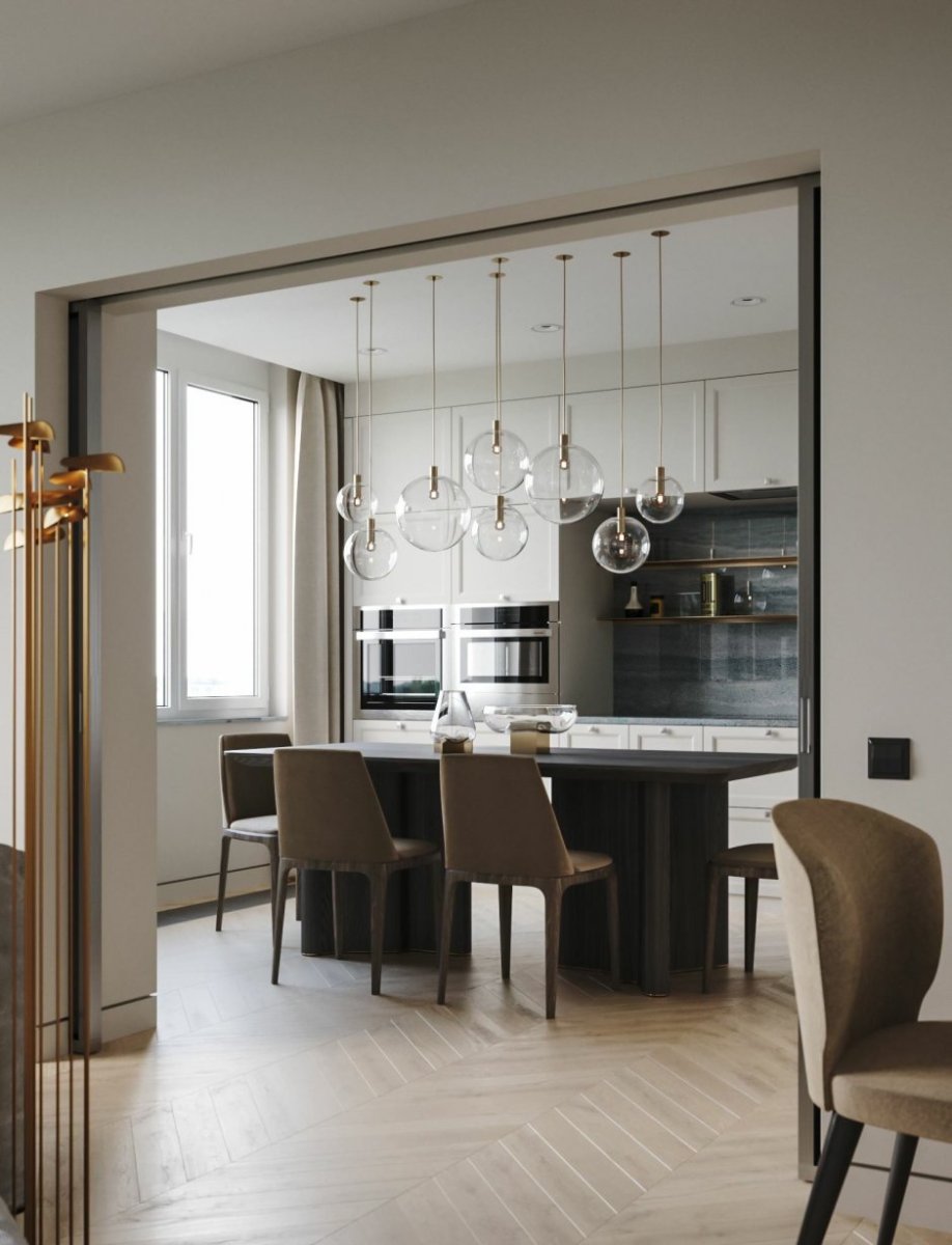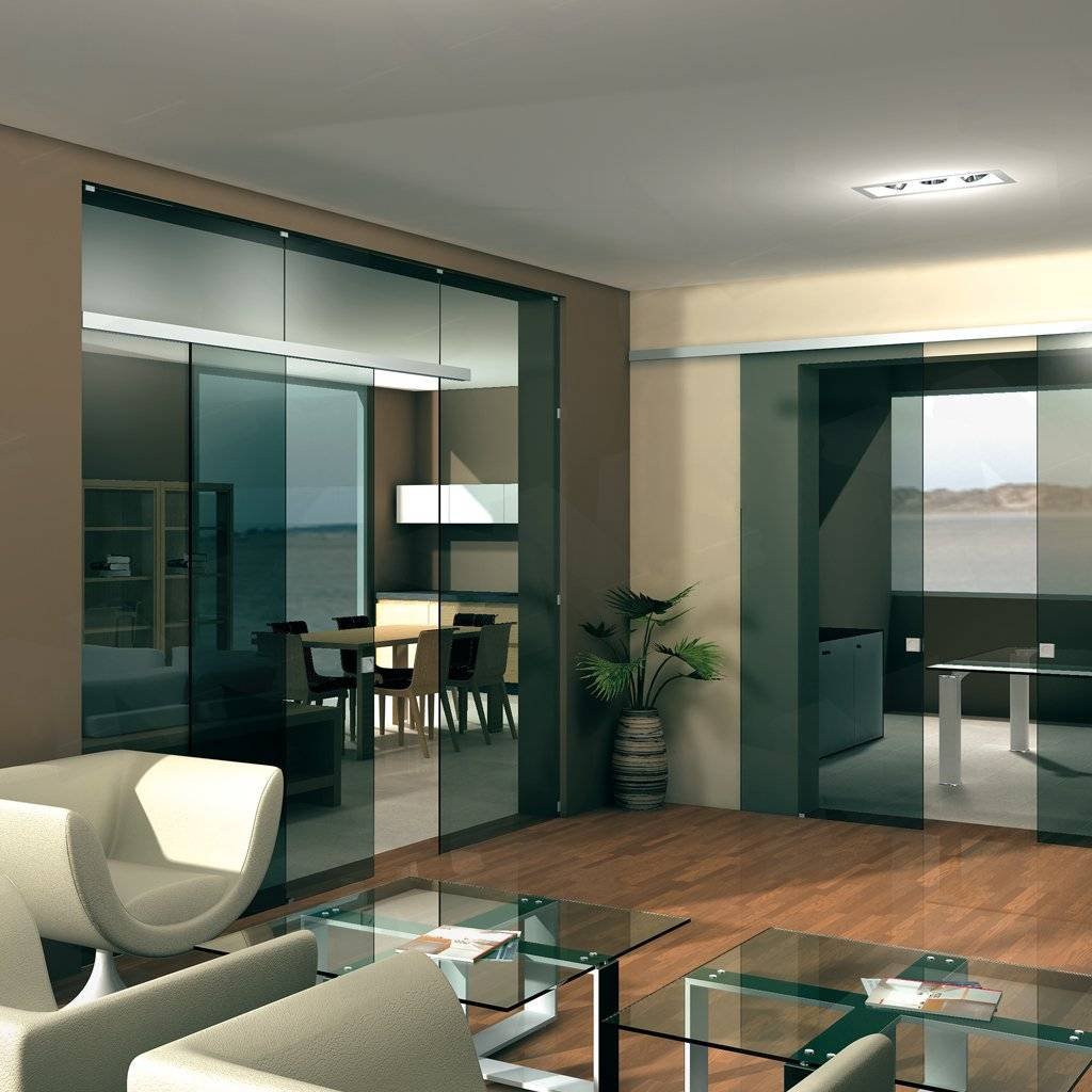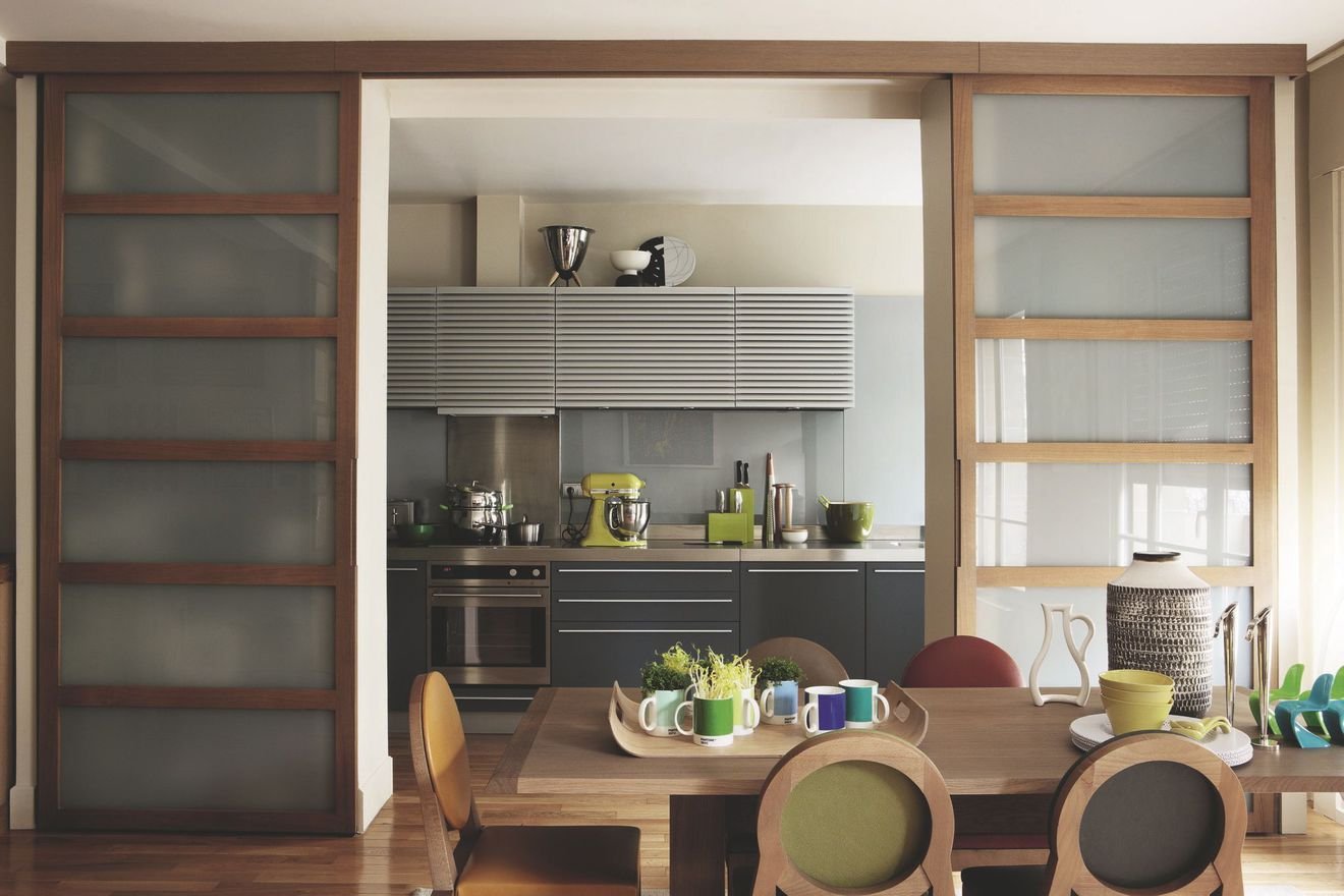 Раздвижная стеклянная перегородка между кухней и гостиной