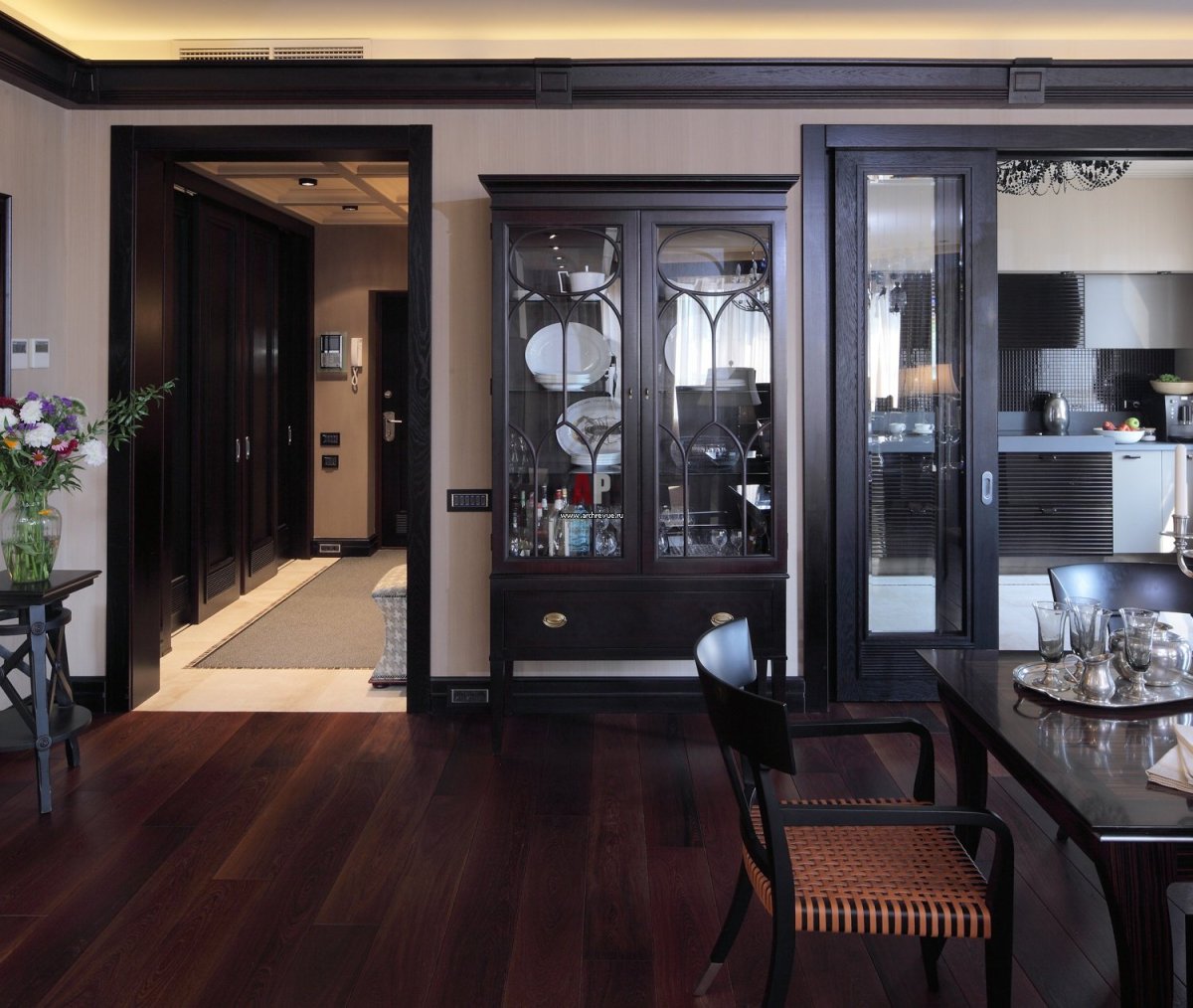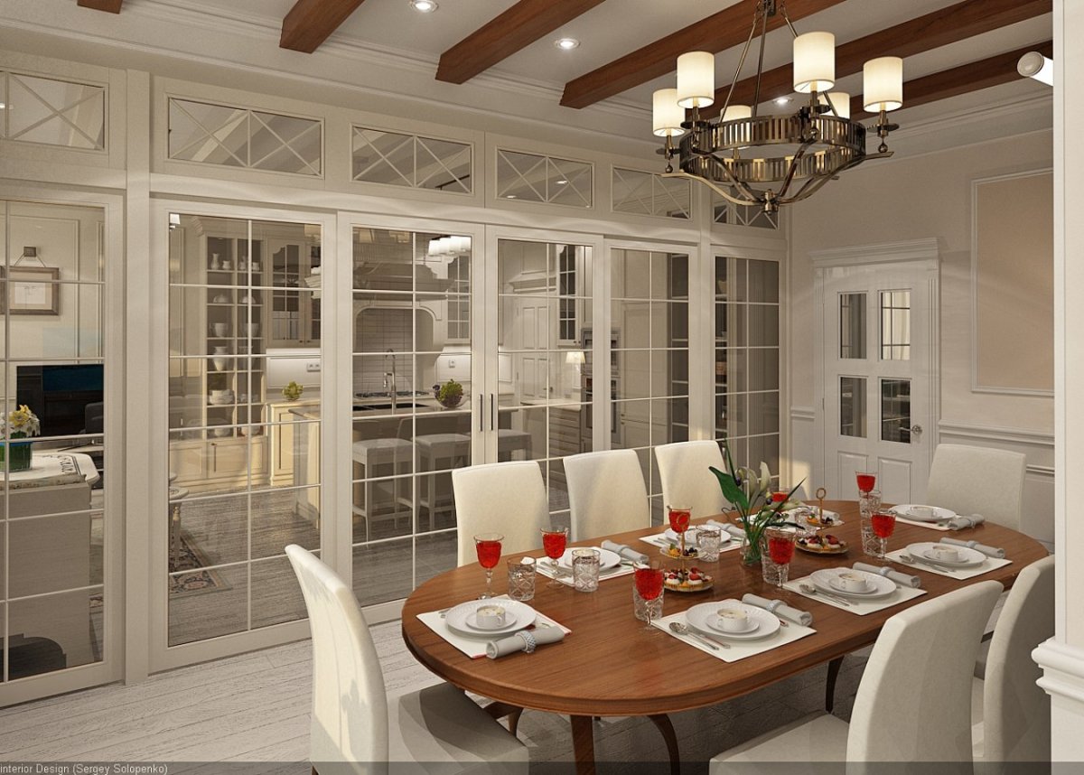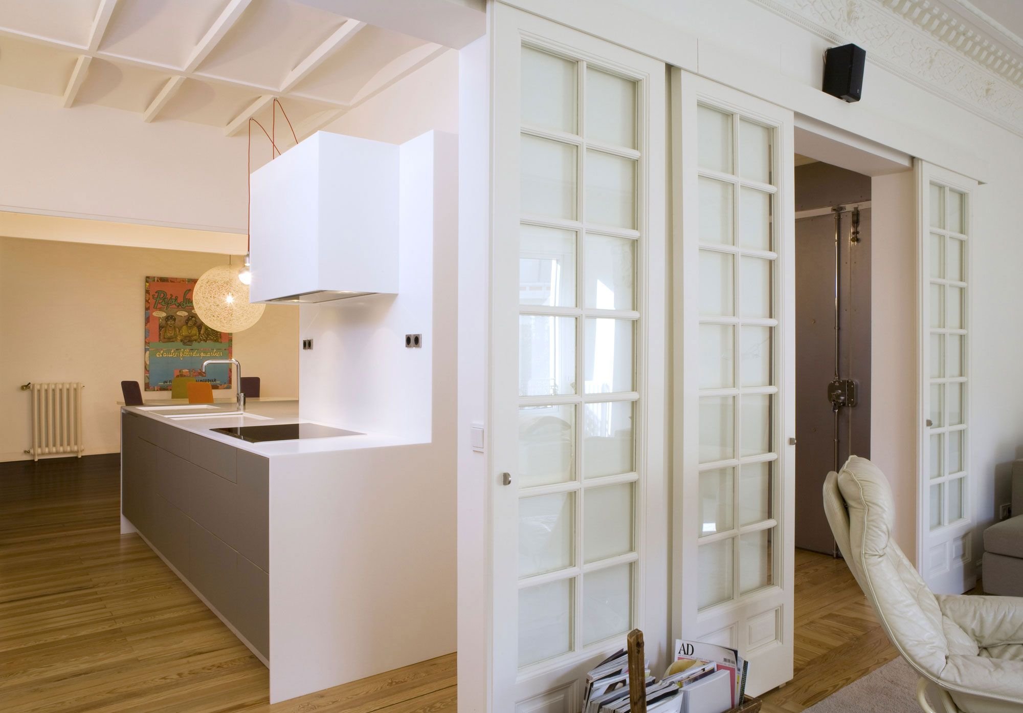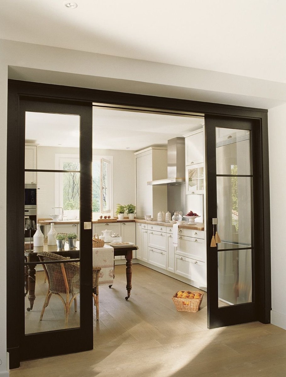 Раздвижная стеклянная перегородка между кухней и гостиной