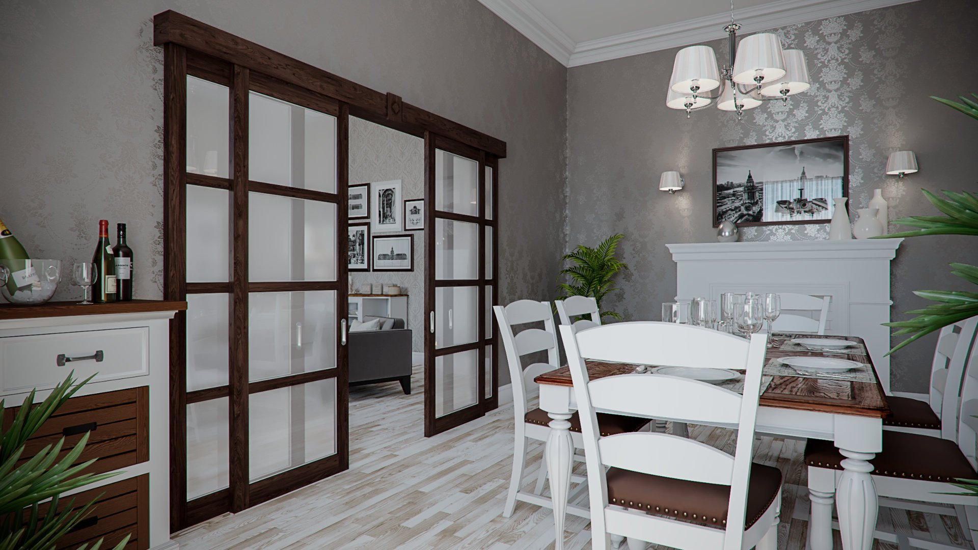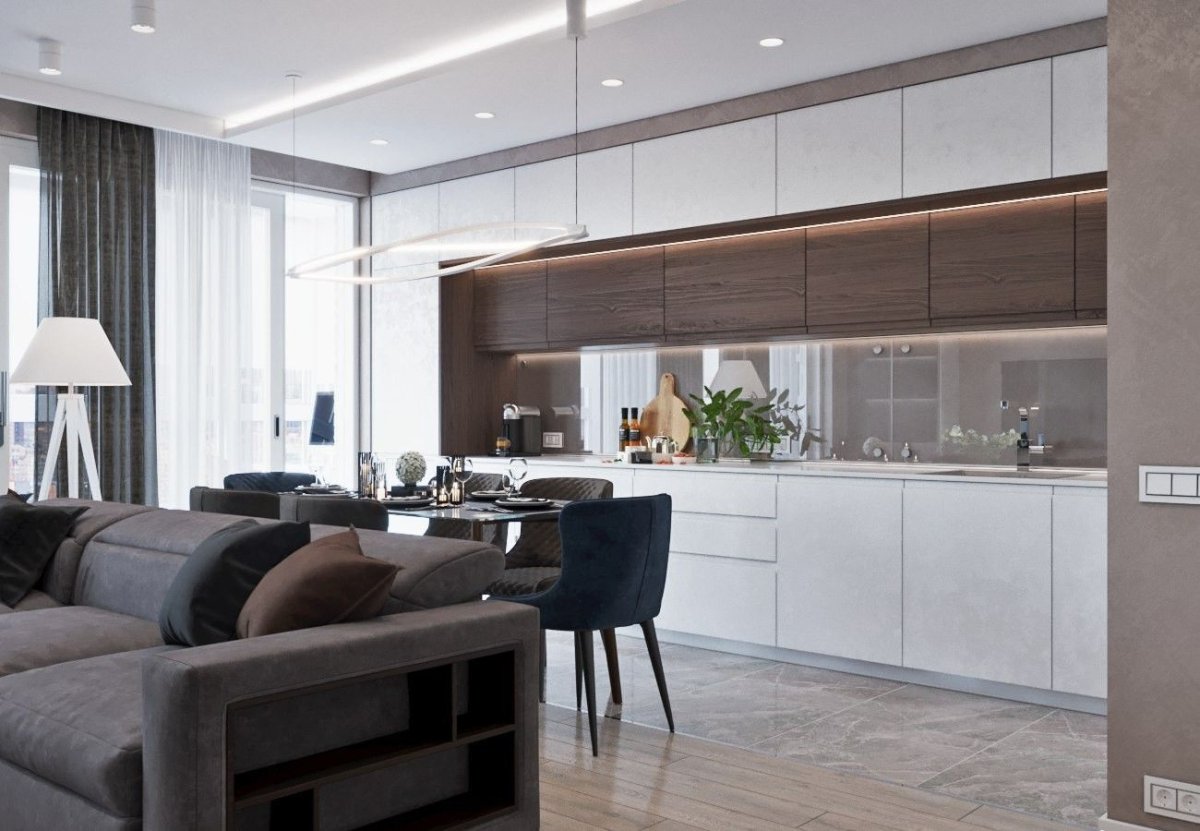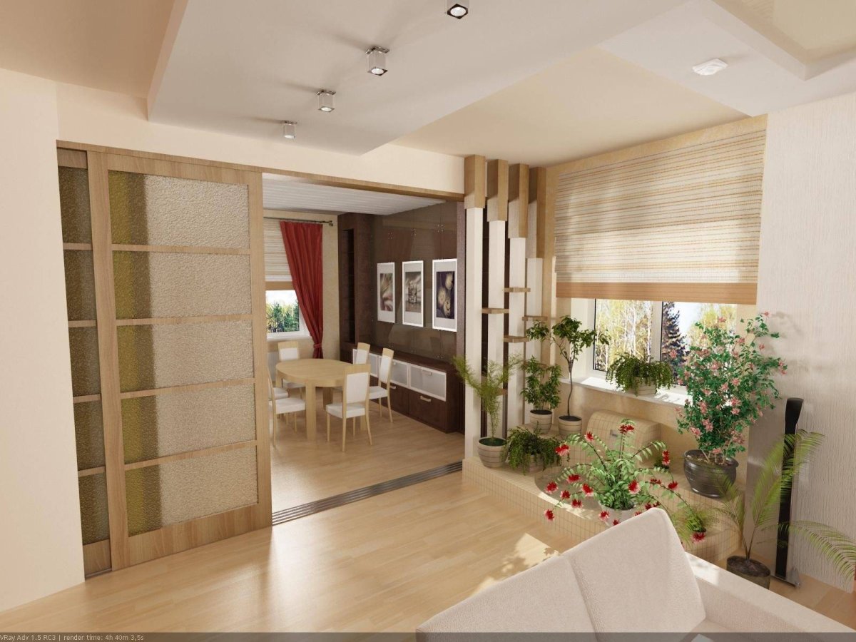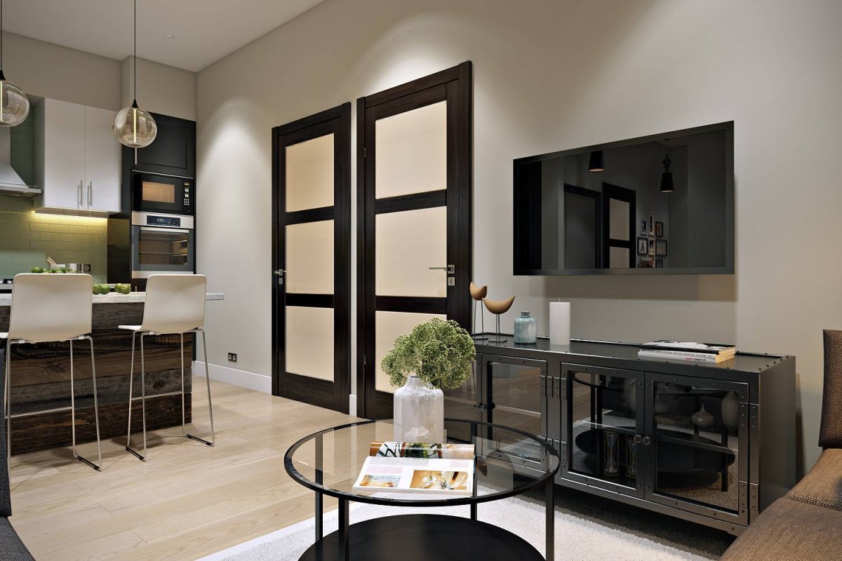 Маленькая кухня и гостиная с раздвижной перегородкой